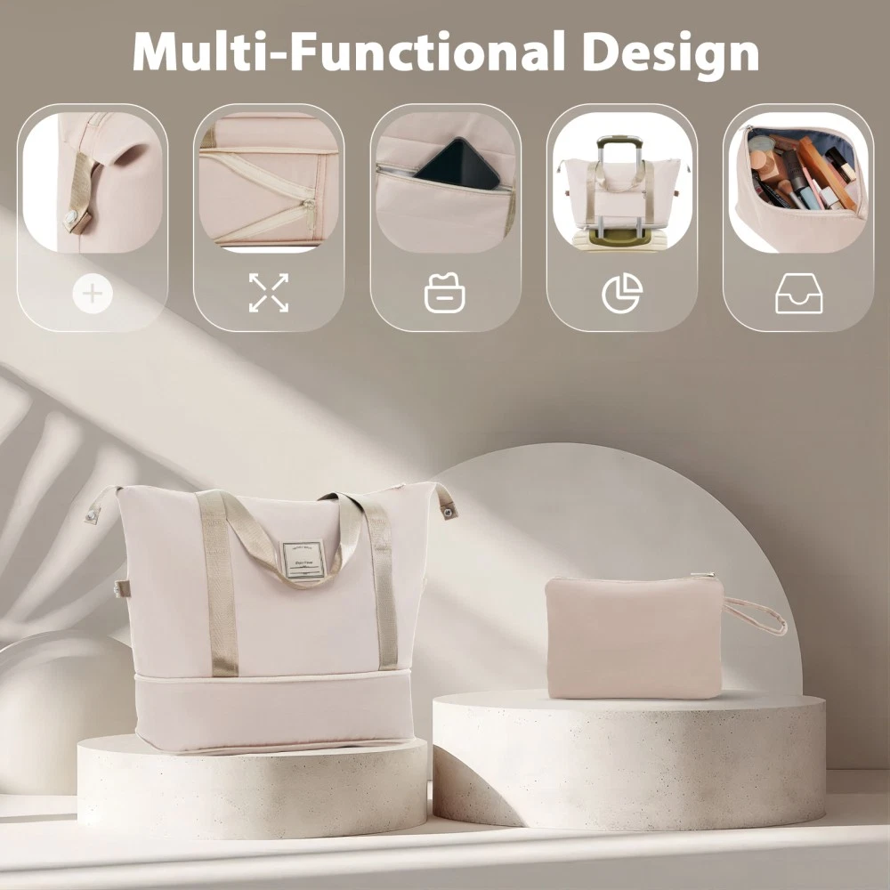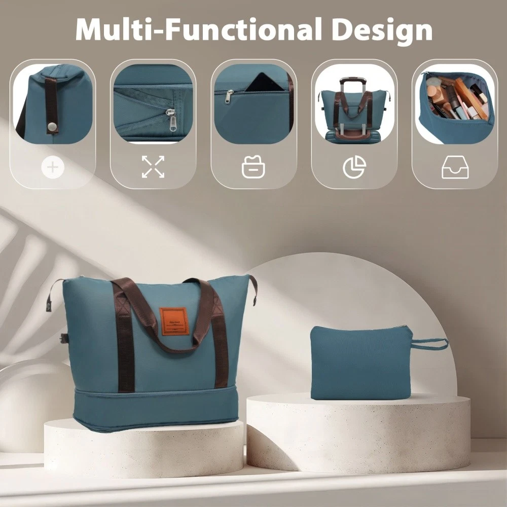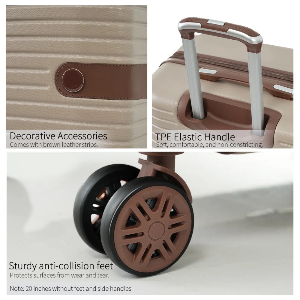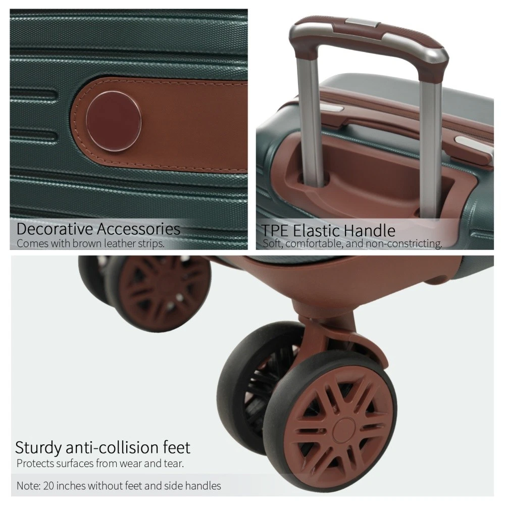 3 piece set offers a 20" luggage, a weekender travel bag and a toiletry bag. The 20-inch carry-on luggage meets the size requirements of most airlines - 22x14x9, allowing you to travel worry-free. Perfect for weekend getaways and short trips. 20-inch size:13.6"x 8.9"x 21.3". 20-inch suitcase is made of lightweight, durable and impact-resistant high-quality ABS material, and the travel duffel bag and toiletry bag are made of waterproof and scratch-resistant Oxford cloth, providing comprehensive security for all your belongings. Superior quality, silent-running, multi-directional silent spinner wheels assure smooth maneuverability. 360° double wheels are more durable and adaptable to various road conditions. Bring comfort to your journey. Upgraded zipper bites tightly and pulls smoothly, effectively preventing the chain heads from falling off and zippers from tearing. Paired with a 3-dial TSA lock, it provides security and convenience for travel. Expandable duffel bag: The duffel bag comes with a trolley sleeve with zippered pocket, and you can conveniently attach it to the adjustable handle. HOW TO RESET THE TSA COMBINATION LOCK 1. The lock is set to 0-0-0 at the factory. 2. Make sure the dials are rotated at 0-0-0 or any other code you've set before resetting it. 3. Use a pen or something pointed to press the reset hole adjacent to the dials. 4. Enter your new code by rotating the dials 5. Push the key button once and your code is now set. 6. Scramble the dials and test your new code to be sure the correct one is set.