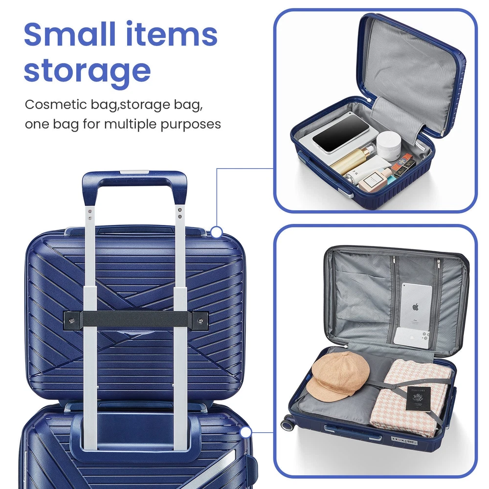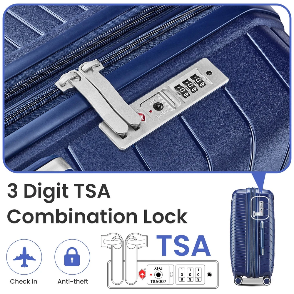 Luggage Sets 4 Piece(14/20/24/28), Expandable Lightweight Suitcase with 4 Double 360 Degrees Mute Spinner Wheels PP Materials Durable TSA Lock Travel Luggage Specifications Place of Origin China Main Color Navy Blue Main Material Polypropylene Dangerous Goods #dangerFlag# Dimensions & Weights Assembled Length (in.) 18.30 Assembled Width (in.) 10.80 Assembled Height (in.) 29.00 Weight (lbs) 24.00 Product Features Lightweight & Durable: This family luggage is made of strong waterproof PP exterior and black lined interior, which is easy to clean and long-term use. In addition, it is light in weight and easy to carry. Four molded side feet keep the luggage