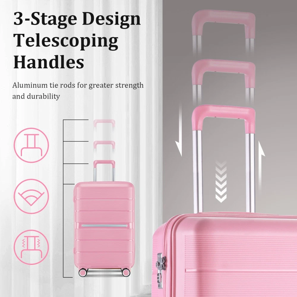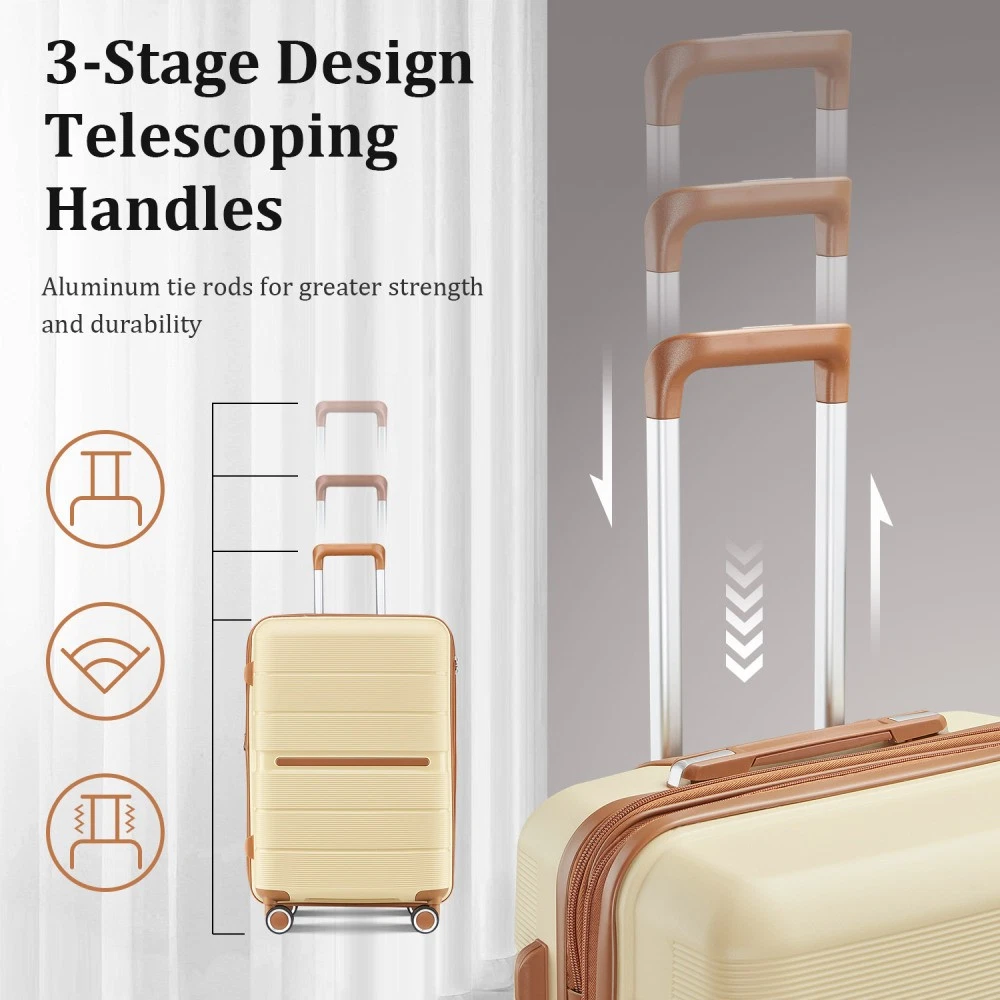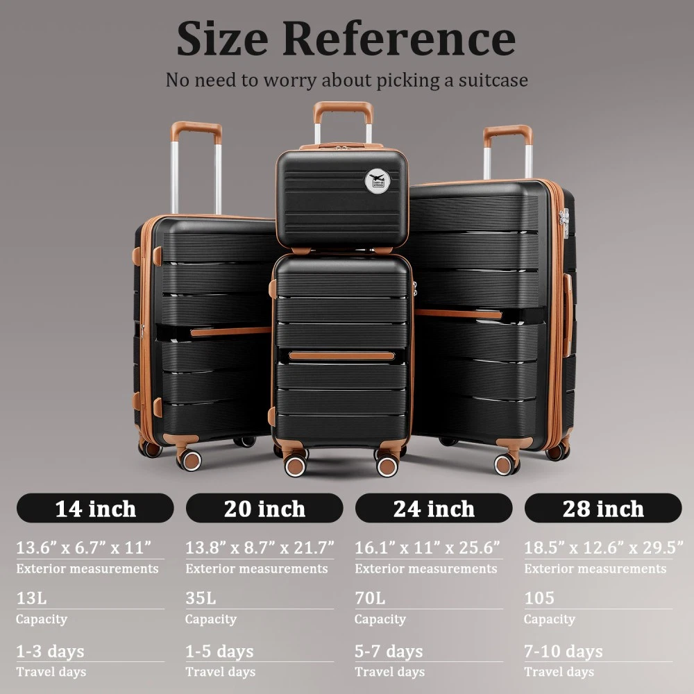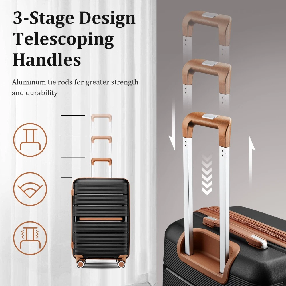 Top quality luggage sets, PC material for hardshell, which makes the luggage more durable, lighter and impact-resistant. 21in is best for carry on, 29in expands 20% for more spaces. Organized and Spacious Interior. The fully lined luggage includes a handy divider and an interior organizer with zippered pocket for smaller items. Organized and Spacious Interior. The fully lined luggage includes a handy divider and an interior organizer with zippered pocket for smaller items. Adjustable 3-level aluminum telescoping handle allows you to quickly maneuver in tight spaces and it's sturdier than most of the telescoping handle on the market. The top/side soft reinforced grip handles for easy carrying when in a hurry, or it can be really handy when lifting the suitcase with heavy weight. Side-mounted TSA LOCK with smooth YKK zipper act to deter theft, ensuring that only you or a TSA agent have easy access to your belongings when traveling, added security and convenience. Multi-directional spinner wheels to provide 360° effortless mobility and ease on traveler's wrist, re-engineered lightweight.