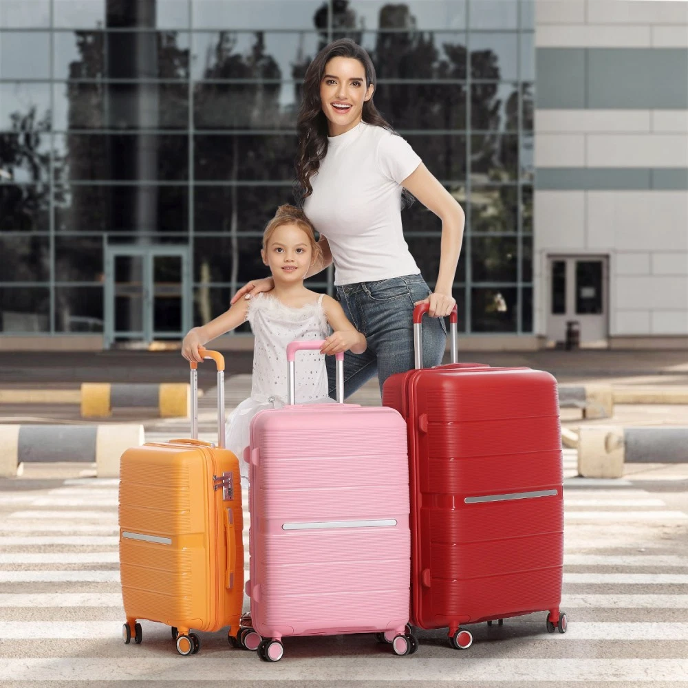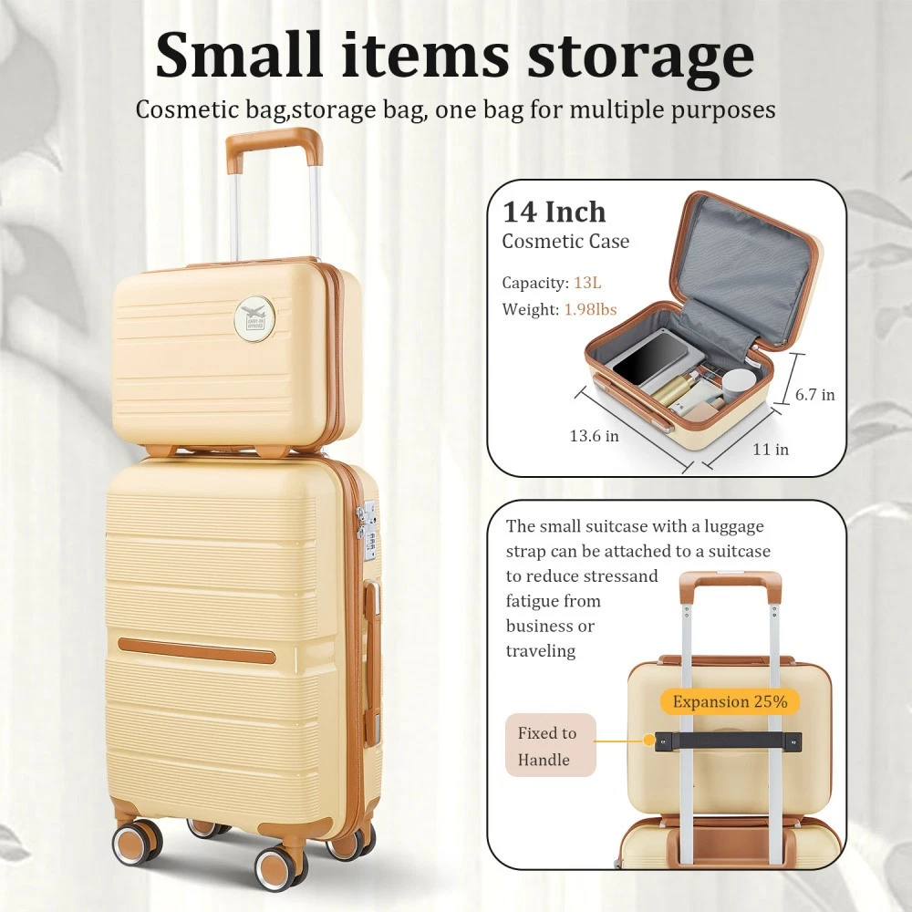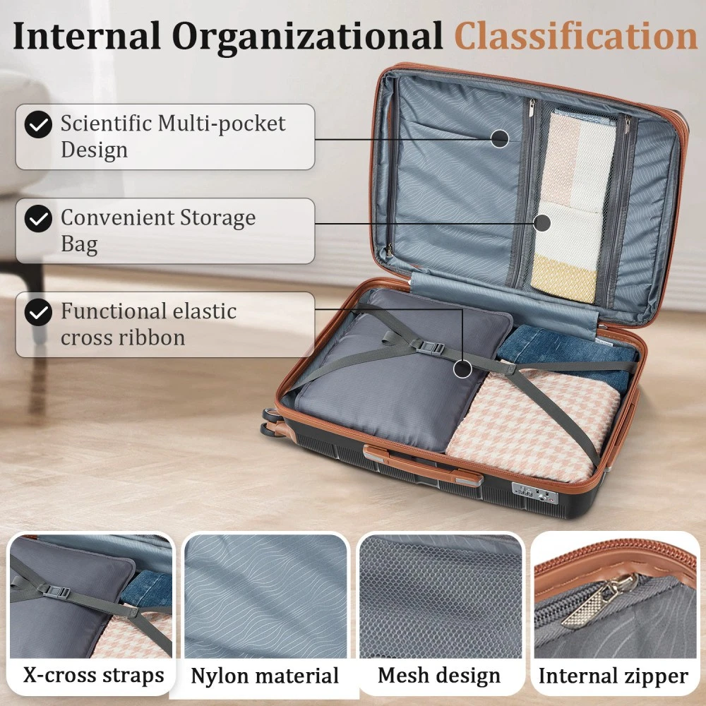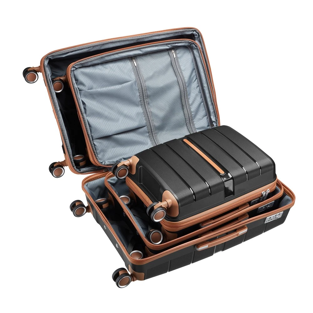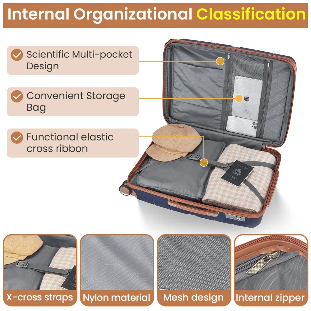 Top quality luggage sets, PC material for hardshell, which makes the luggage more durable, lighter and impact-resistant. 21in is best for carry on, 29in expands 20% for more spaces. Organized and Spacious Interior. The fully lined luggage includes a handy divider and an interior organizer with zippered pocket for smaller items. Organized and Spacious Interior. The fully lined luggage includes a handy divider and an interior organizer with zippered pocket for smaller items. Adjustable 3-level aluminum telescoping handle allows you to quickly maneuver in tight spaces and it's sturdier than most of the telescoping handle on the market. The top/side soft reinforced grip handles for easy carrying when in a hurry, or it can be really handy when lifting the suitcase with heavy weight. Side-mounted TSA LOCK with smooth YKK zipper act to deter theft, ensuring that only you or a TSA agent have easy access to your belongings when traveling, added security and convenience. Multi-directional spinner wheels to provide 360° effortless mobility and ease on traveler's wrist, re-engineered lightweight.
