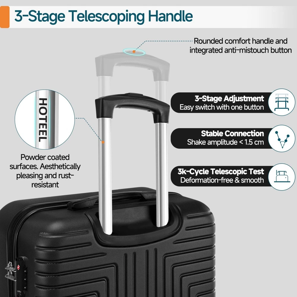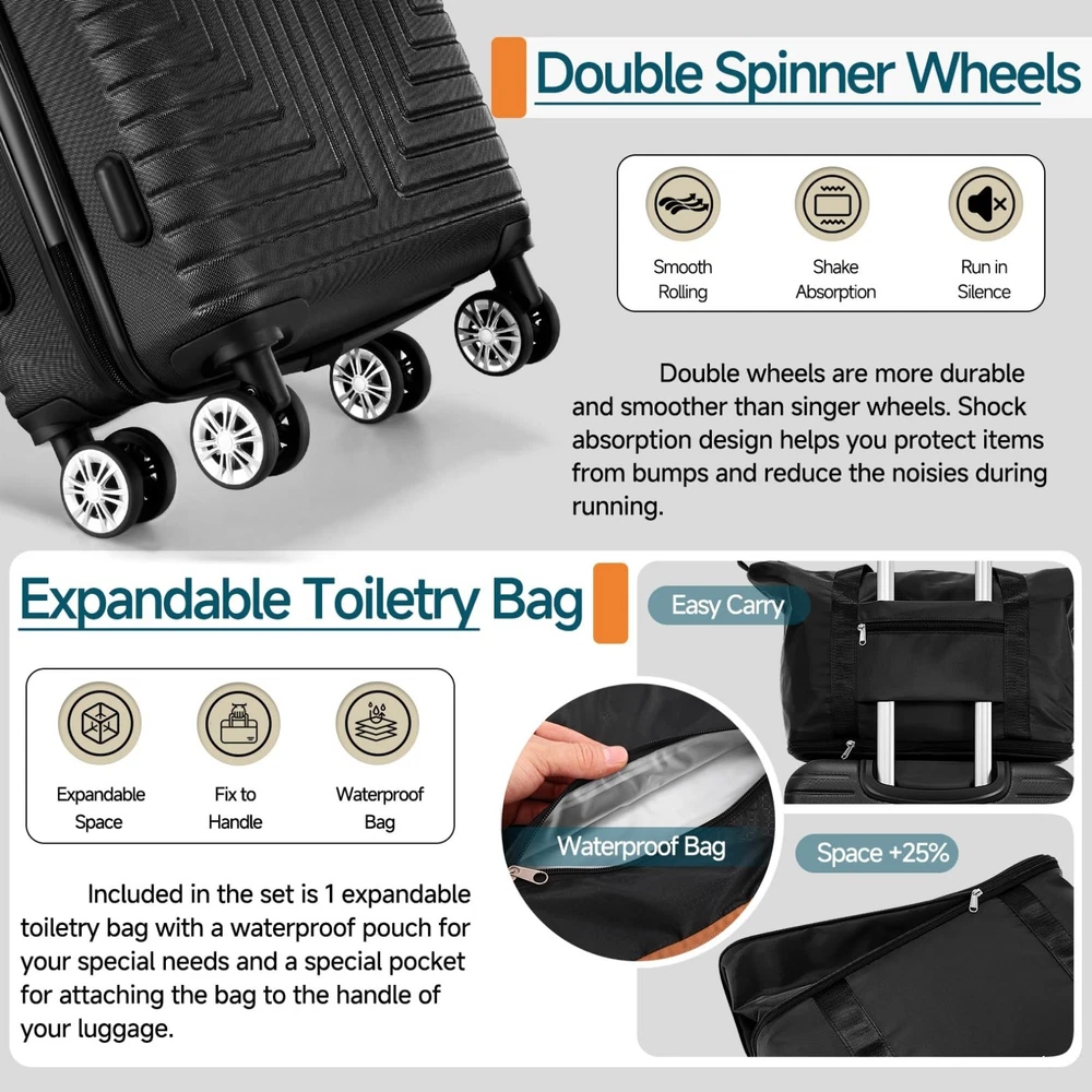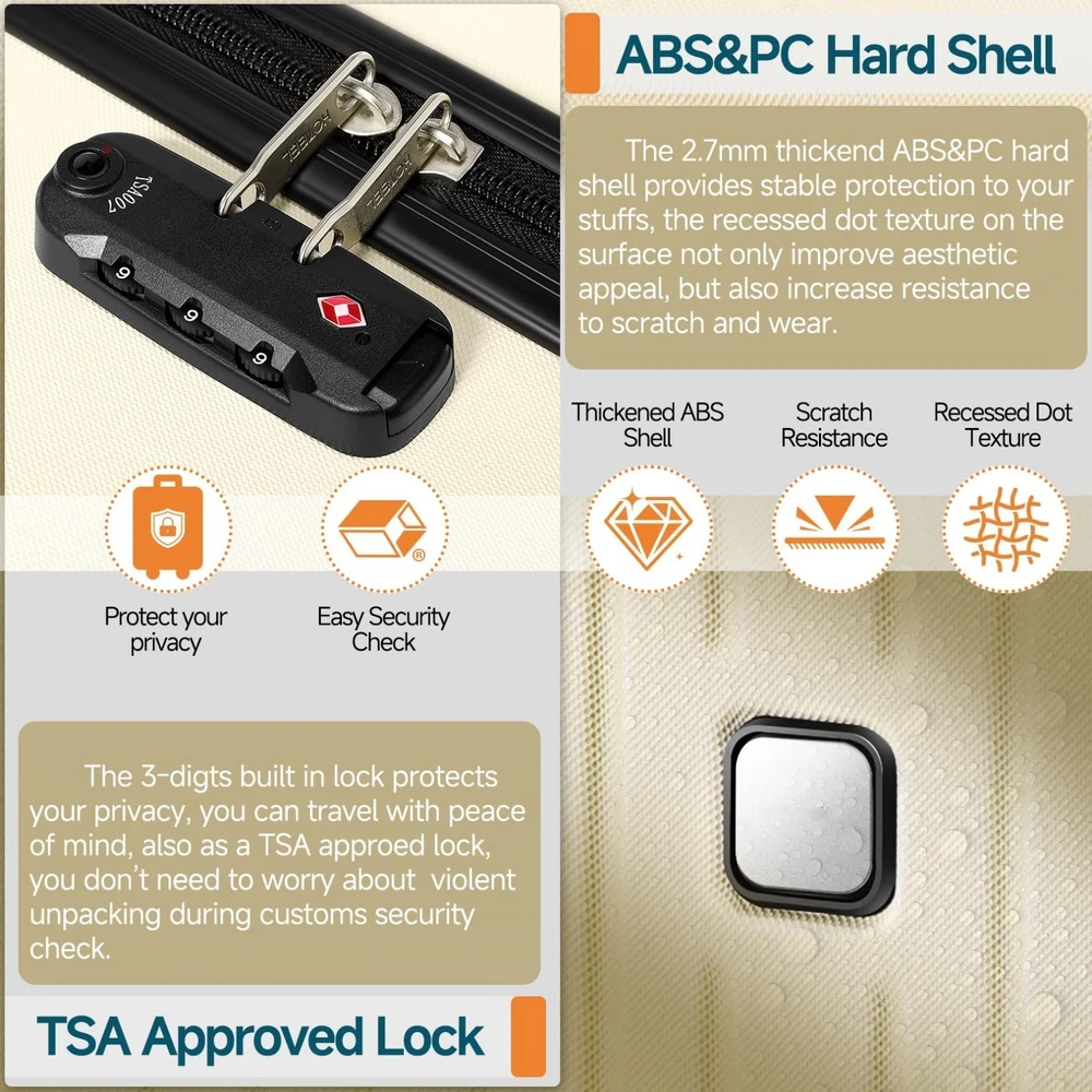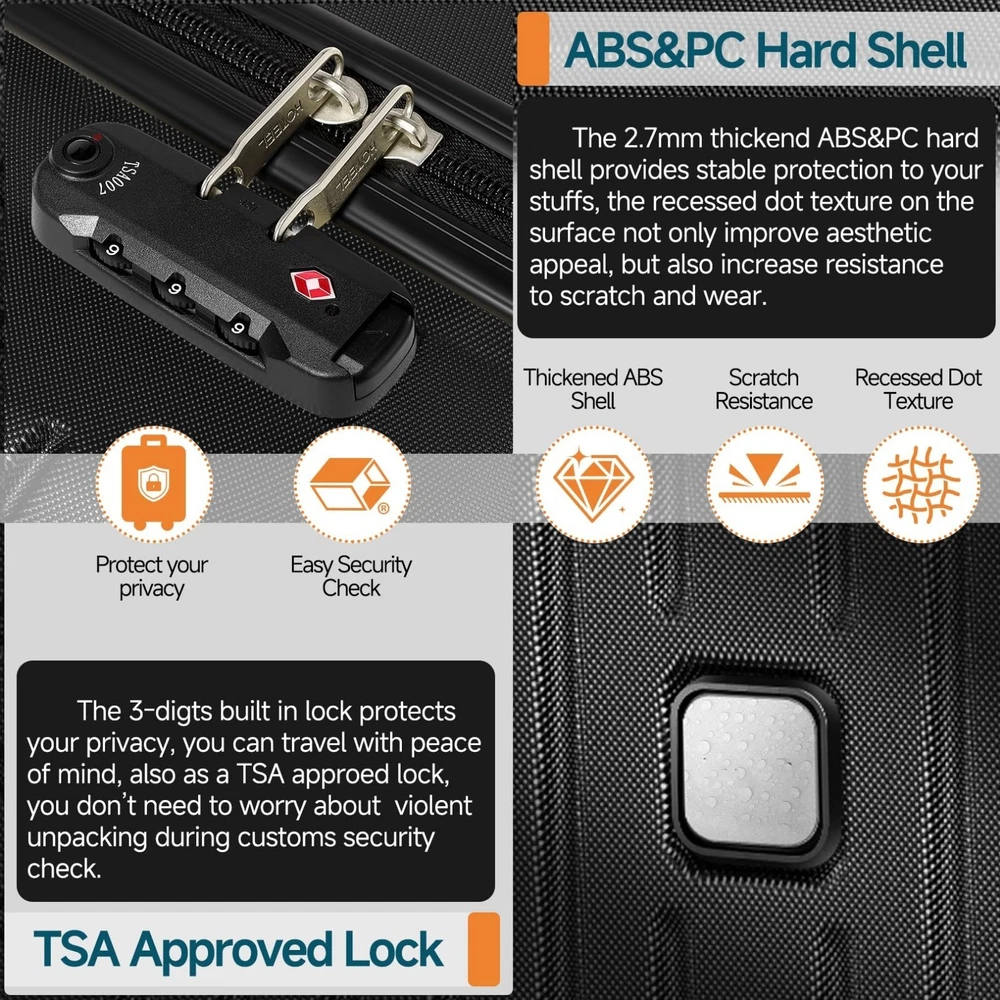 Luggage Sets 3/4/5 Piece, ABS+PC Hard Shell Suitcases with TSA Lock & Side Hook~