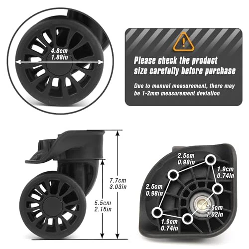 Menu 1. We require immediate payment. 2. We currently accept payment via eBay managed payments only. 3. Once payment is cleared, we will dispatch your shipment within 1-3 business days. Please refer to the "Shipping" tab for more information regarding shipping speed to your destination. Luggage Wheels Replacement 2 pcs Suitcase Replacement Wheels Wear-Resistant Luggage Carry On Spinner Wheels with 5 Screw Holes (ZA-122C) Product description Material of these Luggage Spinner Wheels: PVC + PP + Bearing,strong and wear-resistant Size of these suitcase wheels:As show in photo 2 ;Please check the SIZE details of the wheels carefully——inclusive the appearance,size information and the distance between screw holes.The wheel is NOT universal,you need to check the size information in details Packing list :2 pcs Luggage replacement caster, as photo shown and comes with screws Product features: wear resistant ,only suitable for repairing worn wheels with the same hole pitch and shape,and need you have a strong ability in DIY If you are not sure whether these luggage wheels are suitable for your suitcase, you can send us some pictures about the original wheel and screw side by email(Refer to the 2nd picture),Pls also tell us screw holes distance,we will give you some suggestion. Thanks very much. PLEASE MESSAGE US IF YOU HAVE ANY OTHER QUESTIONS, AND MANY THANKS FOR READING ALL OF THIS. Copyright ©#. All Rights Reserved.