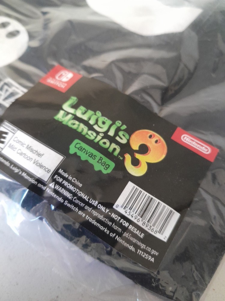 The Luigi's Mansion 3 Canvas Bag is an exclusive Nintendo Switch tote bag from the 2019 Halloween release. Featuring the iconic character Luigi from the popular video game series, this collectible item serves as a must-have for fans of Luigi's Mansion. The bag is branded by Nintendo and part of the Luigi's Mansion product line, adding a touch of authenticity and nostalgia to any gaming enthusiast's collection.