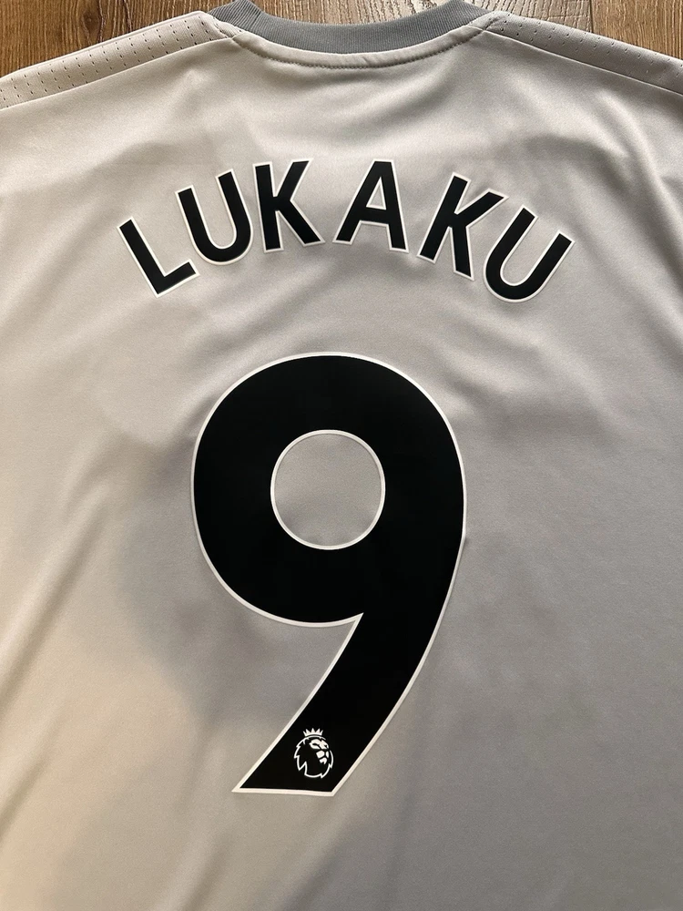 Lukaku #9 Manchester United 17/18 third Size M Used, but excellent condition 8.5/10 Has a small tear in the front of jersey shown in picture #4 #lukaku #manchesterunited #manutd #soccer
