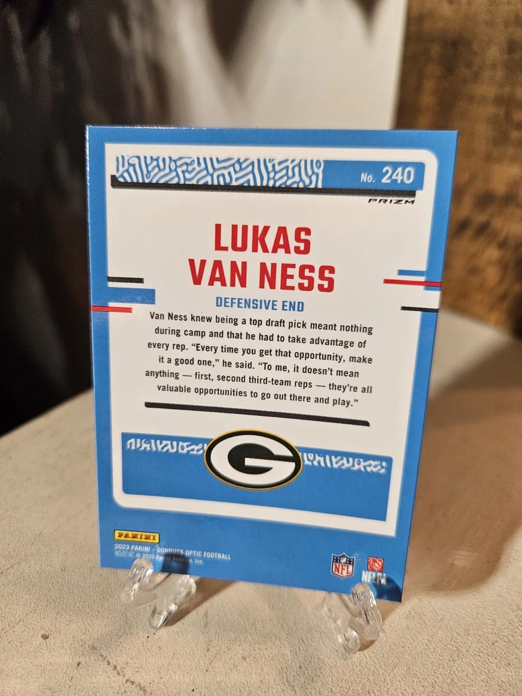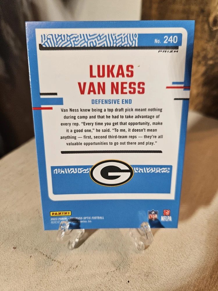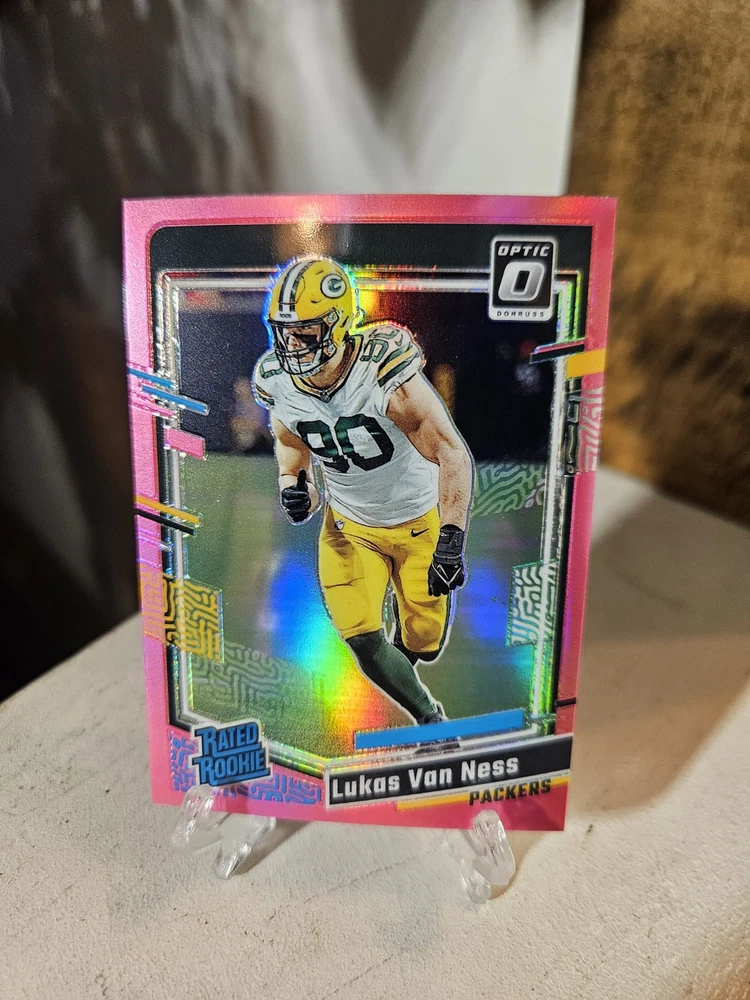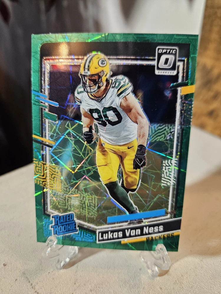 Lukas Van Ness Donruss Optic 6 Card Parallel Lot. Green Bay Packers. Condition is Used. Shipped with USPS Ground Advantage.