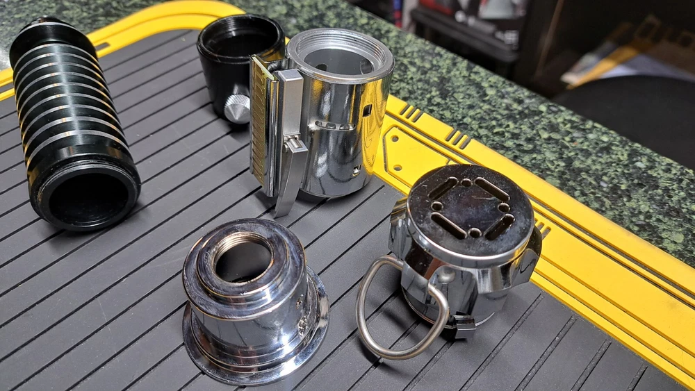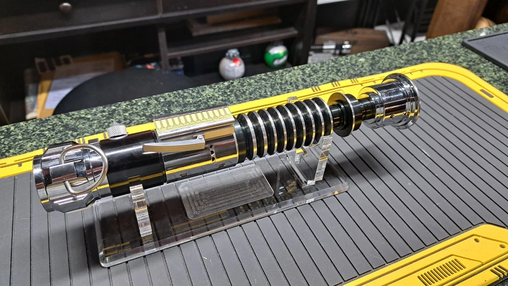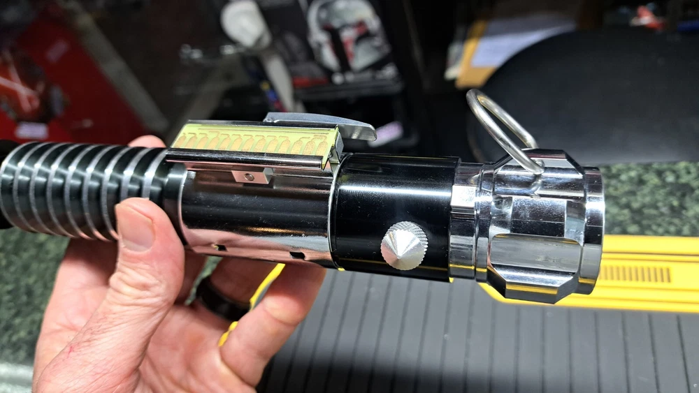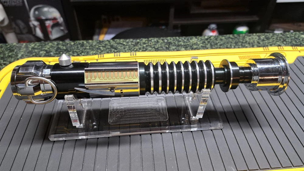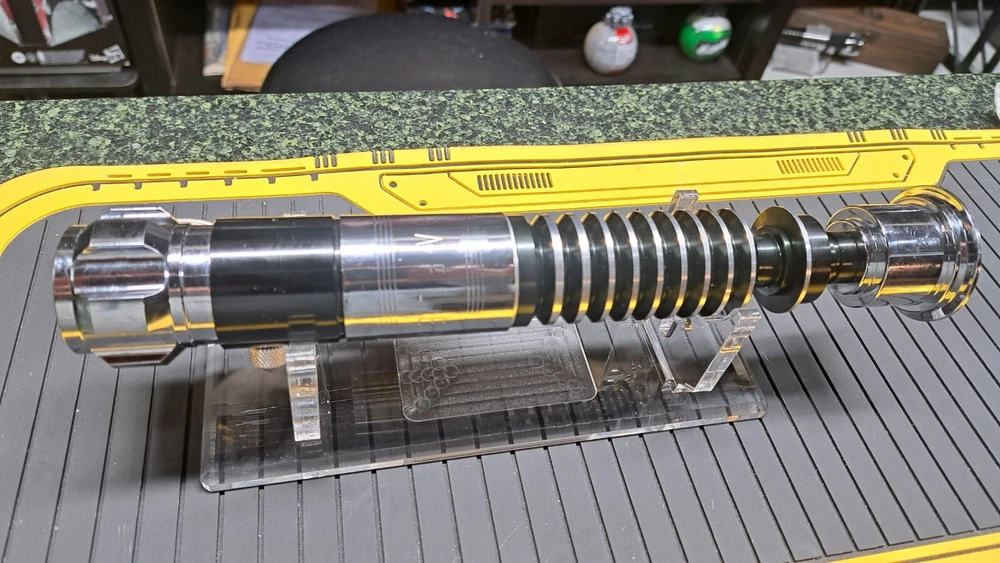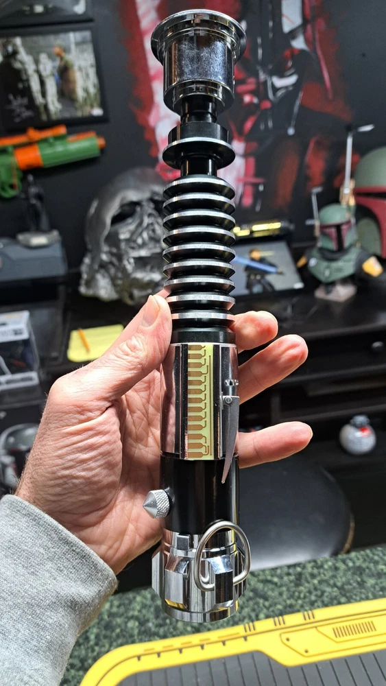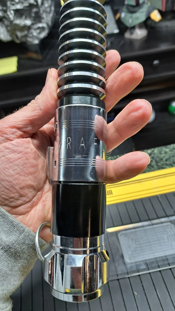 This an empty Luke V2 ROTJ. The saber is empty but has buttons as pictured and ready for you to Install your own electrics. This is a version with the graflex clamp.This is also an amazing display piece. The Luke V2 is actually seen more in Star Wars than the Luke V1. The saber comes from xtech and they are a main saber company developer and supplier for multiple companies like Neosabers and Rebel Sabers. I get saber from them in bulk so packaging may vary. All of these Sabers come with light manufacturer imperfections, but the Sabers look great and new from the manufacturer, please see photos. Please don't hesitate to ask any questions