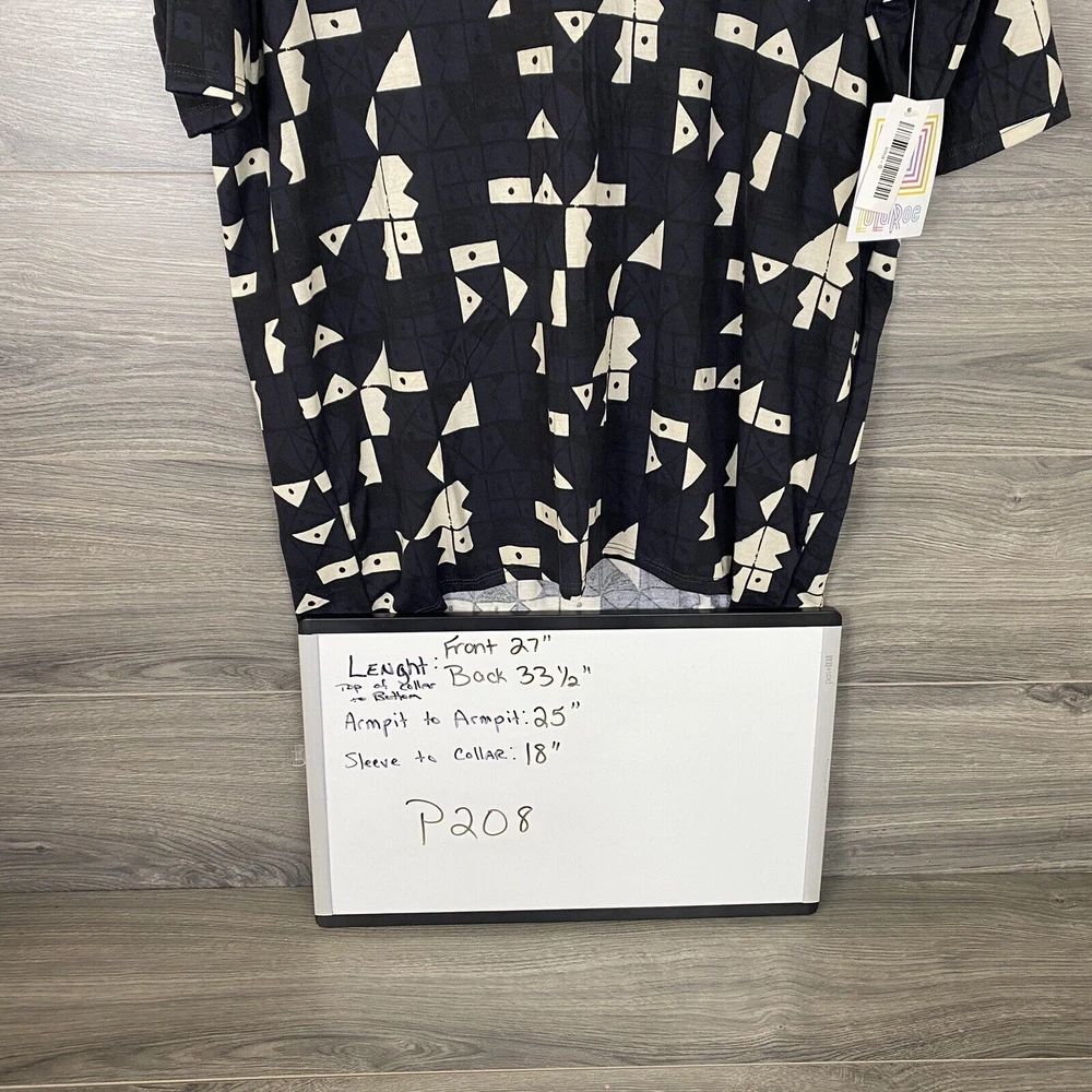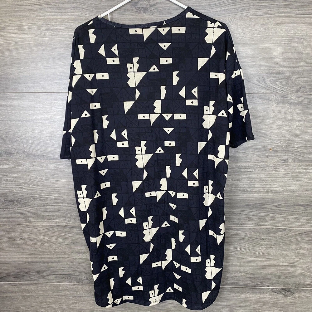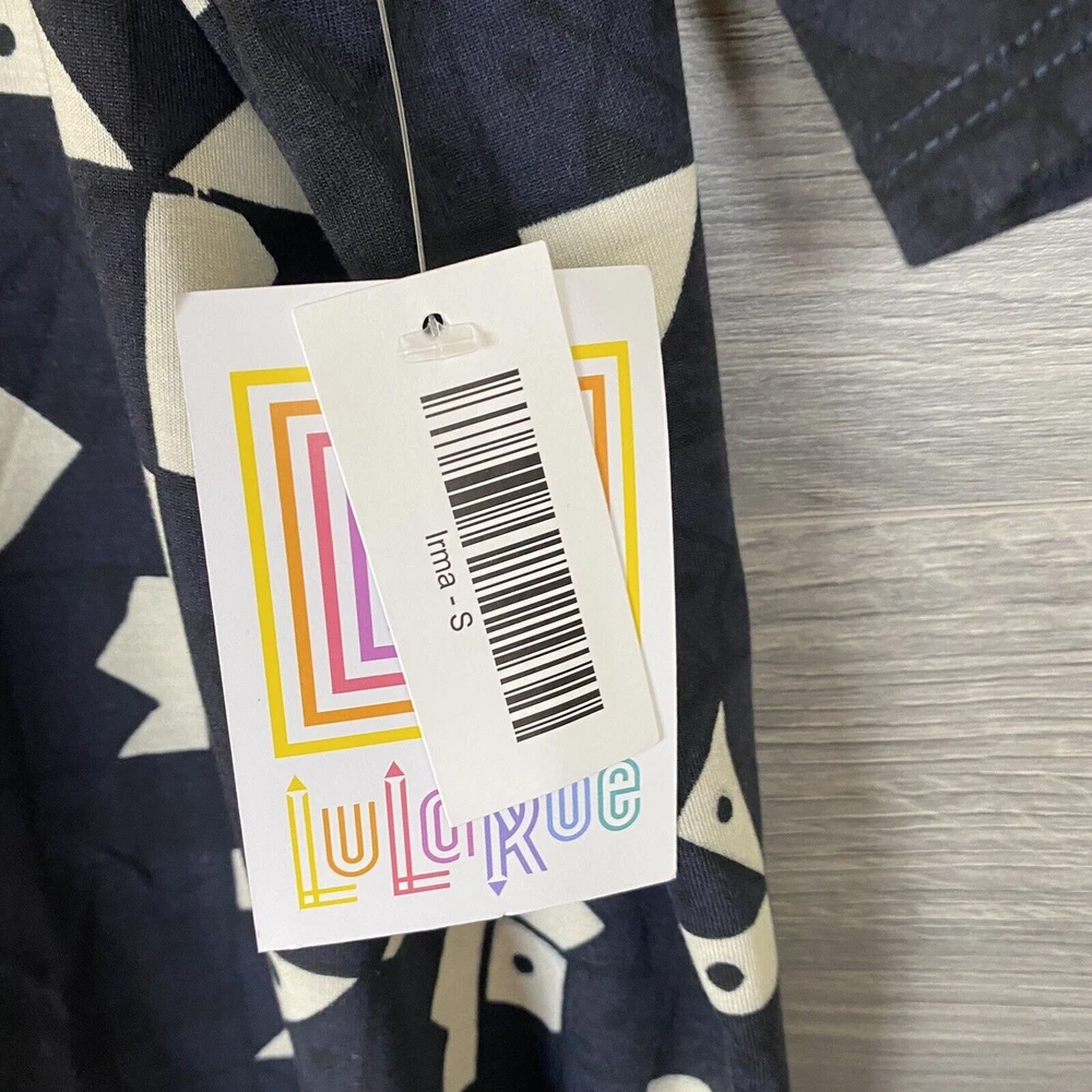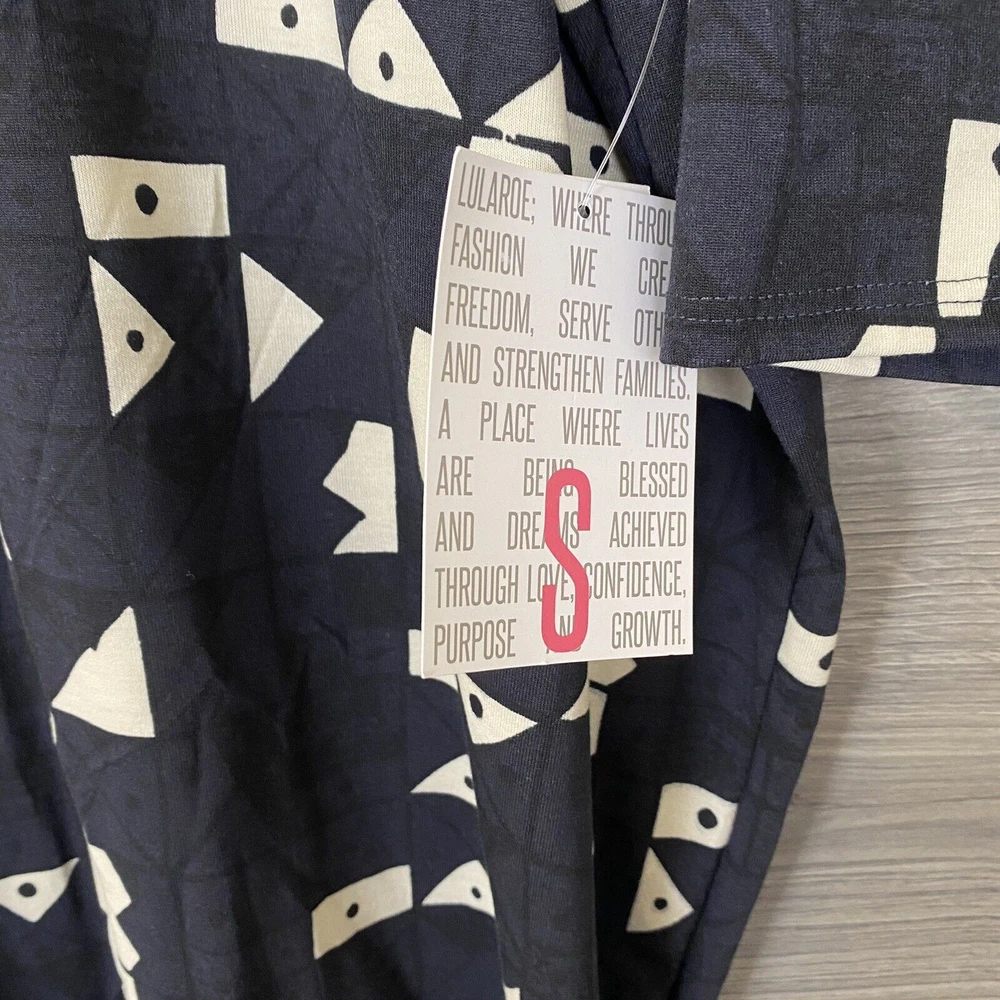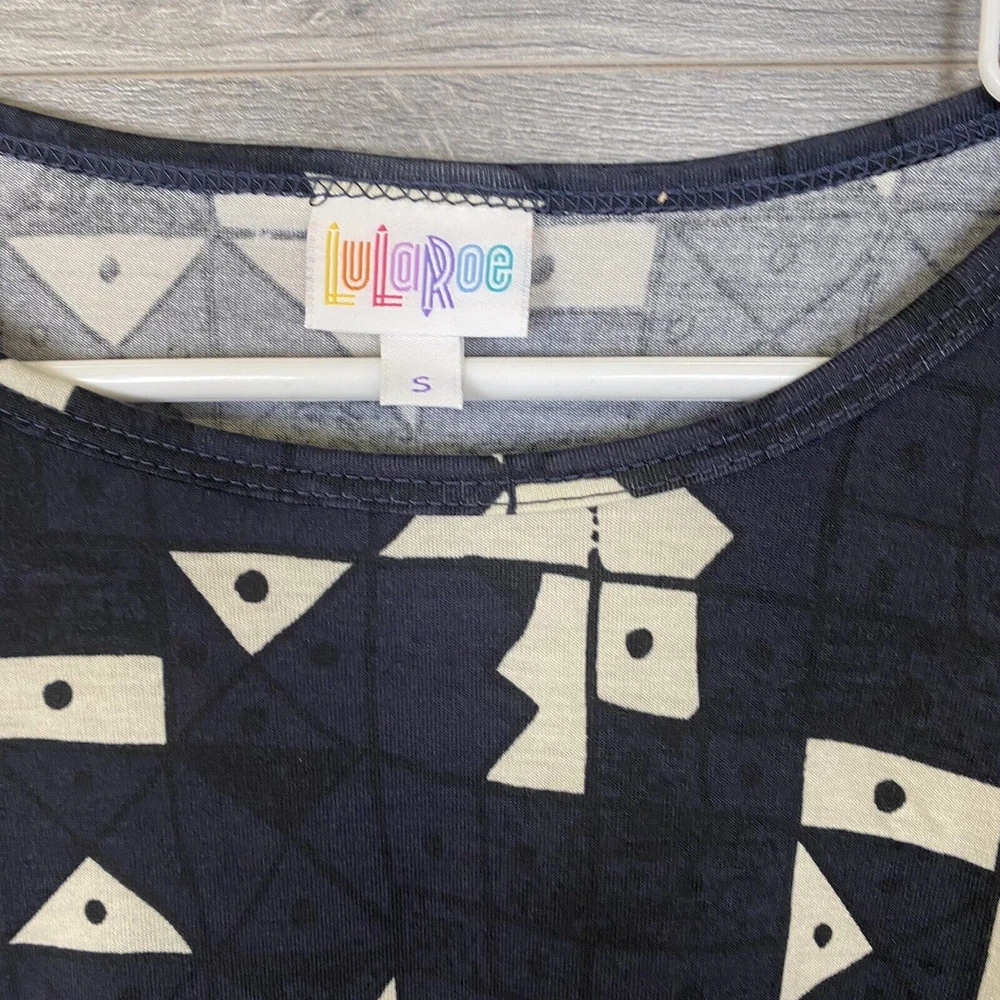 LulaRoe Irma Womens Blouse Size Small Dark Blue With Geometric Design Checks