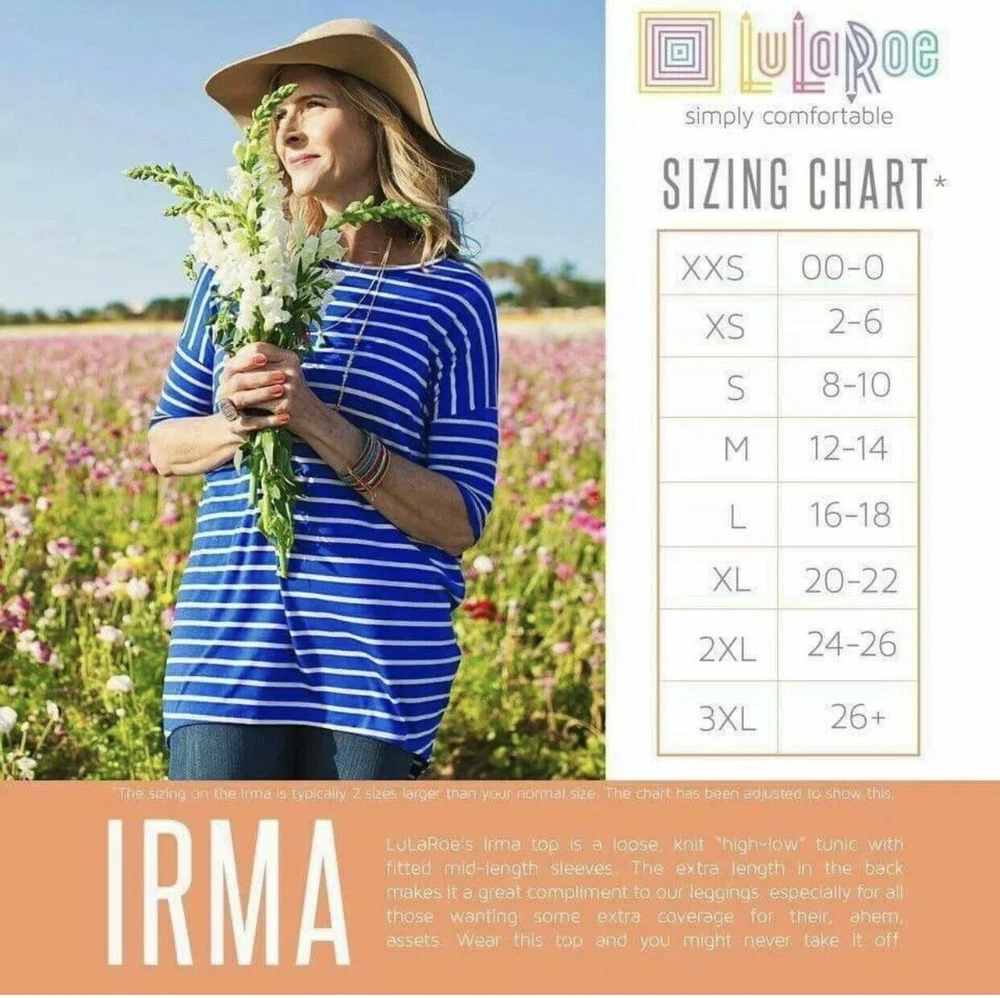 Neckline: Scoop Neck Style: Shirt Size: S Color: Multicolor Sleeve Length: Short Sleeve Theme: Colorful Size Type: Regular Accents: High Low, High-Low, Hi-Low Type: Blouse Department: Women Sleeve Type: Fitted Sleeve Occasion: Casual Fit: Relaxed Vintage: No Pattern: Floral Modified Item: No Features: Oversized, Stretch Garment Care: Machine Washable Product Line: LuLaRoe Irma MPN: Does Not Apply Material: Polyester Blend Brand: LuLaRoe
