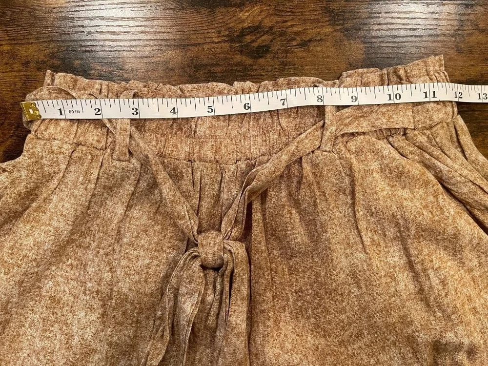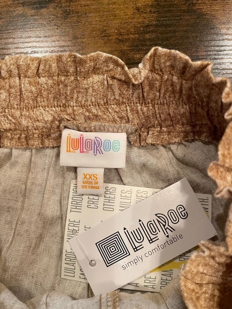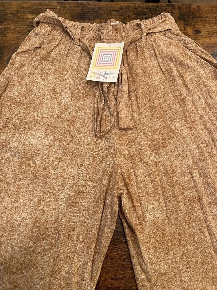 Experience effortless style with these LulaRoe tan palazzo pants, designed for those who appreciate a blend of comfort and chic. The wide-leg silhouette lends an air of bohemian grace, perfect for casual outings or your next beach getaway. With a mid-rise waist and an elastic waistband, these pants offer a snug, yet comfortable fit that flatters the figure and makes on-the-go dressing a breeze. Crafted from a soft mix of rayon and spandex, the fabric provides a gentle stretch, ensuring freedom of movement throughout your day. The pull-on style eliminates the need for cumbersome zippers or buttons, making them an ideal choice for travel. Accented with a faux sash tie belt that adds a touch of elegance, these pants embody relaxed elegance and are a versatile addition to any wardrobe. Note: Waist will stretch to a 28.