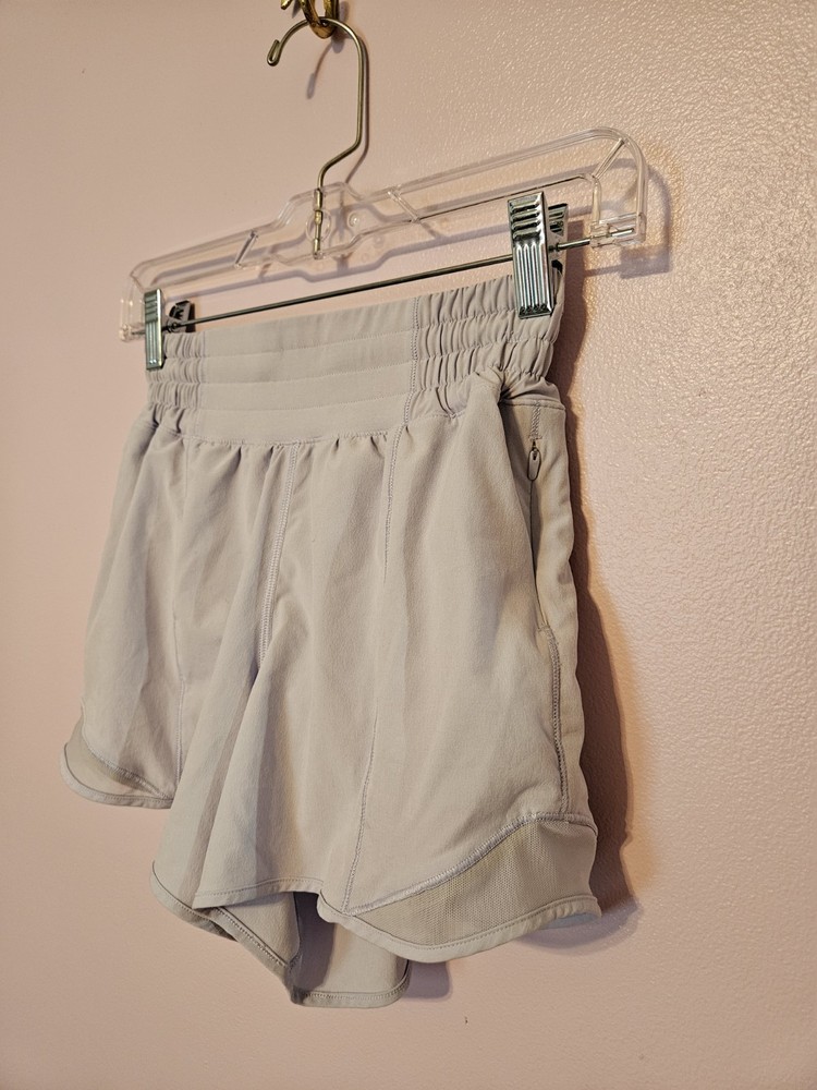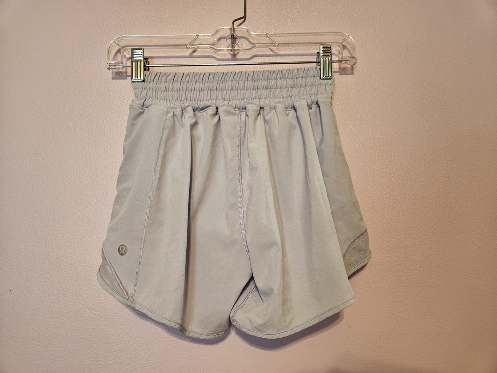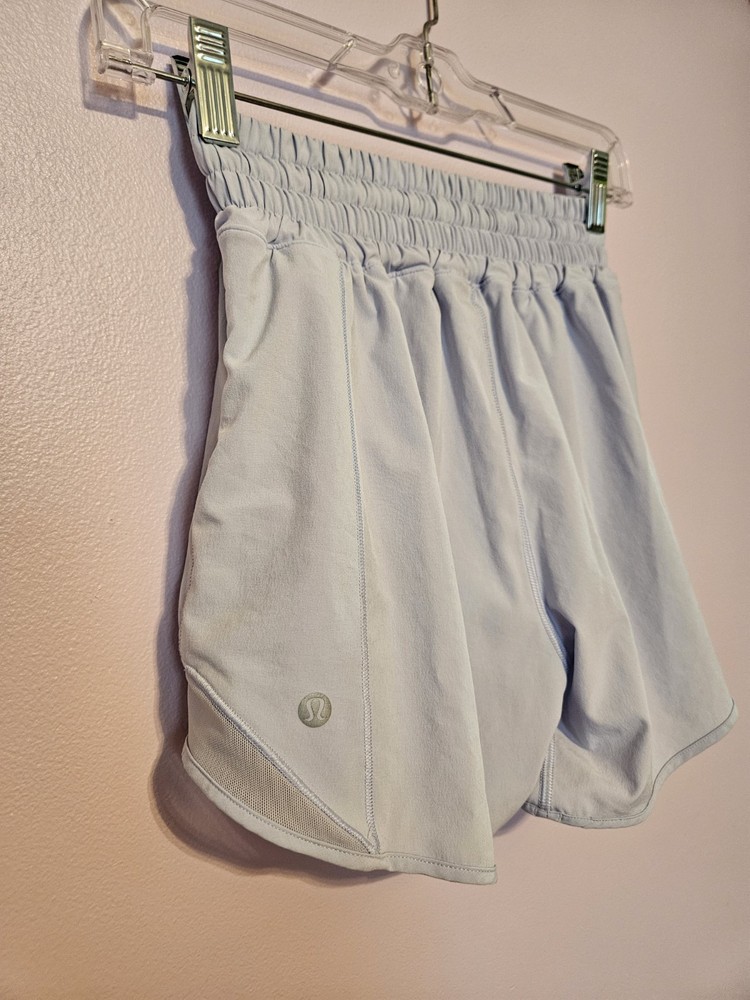 Powder blue Lululemon Hotty Hot High Rise Shorts There is no sizing tag Waist measures 11 inches when laid flat Inseam measures 4 inches