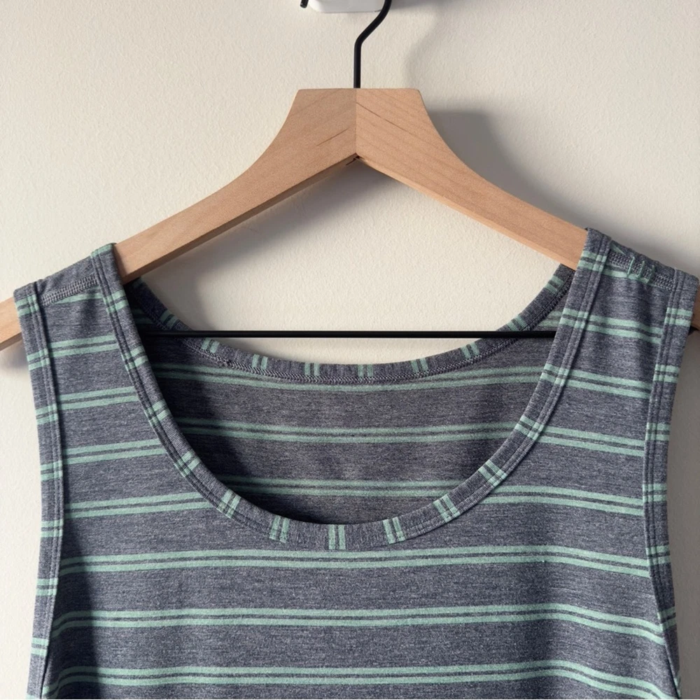 Love this Lululemon tank—super soft, breathable, and perfect for workouts or lounging. The vintage green stripes give it a cool, sporty vibe, and the fit is roomy but flattering. Great pre-owned condition, just some minor logo wear. Super comfy and stylish!