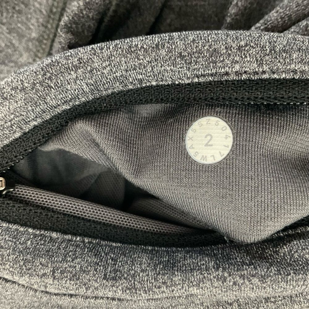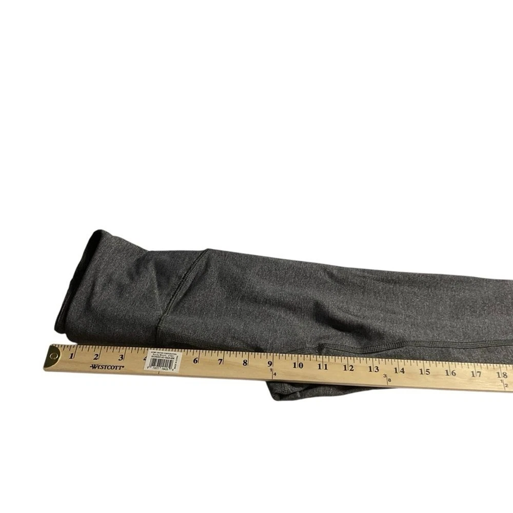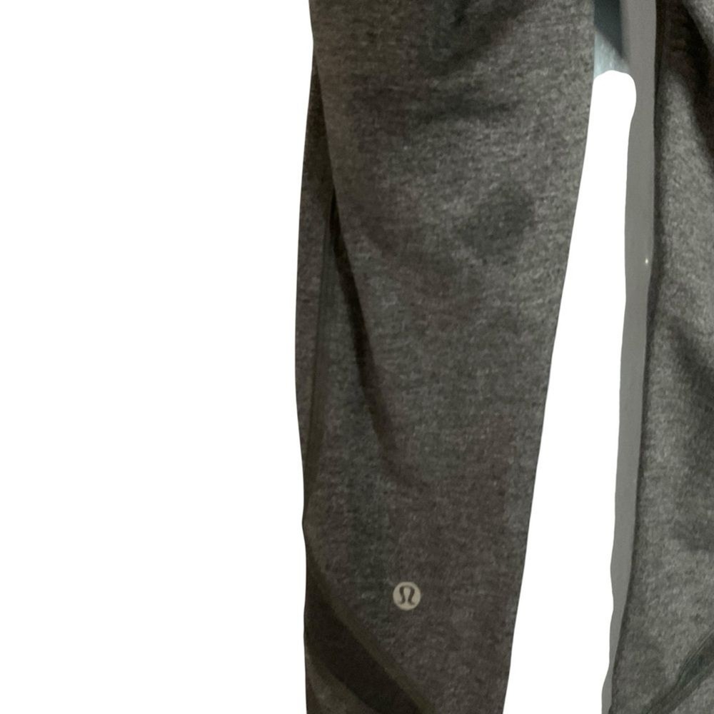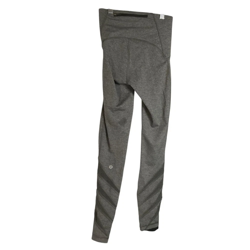 Lululemon Women's Gray Motionful 7/8 Leggings with Mesh Cut Outs Size 2 Features: 7/8 Ankle Length Mesh Cut Outs on Bottom of Legs. Inside Zippered Back Pocket Approx. Measurements flat: 11" waist 9" rise 24" inseam Good pre-owned condition: small stain on leg. See photos for condition details.