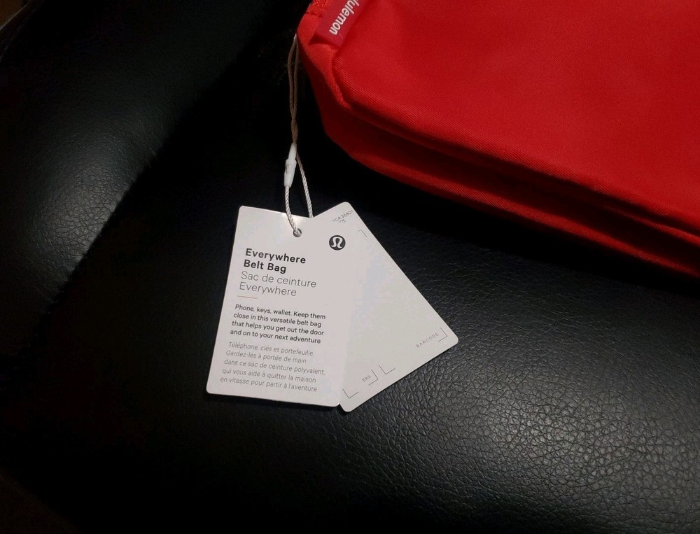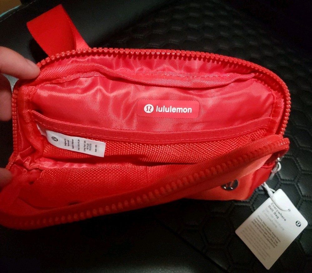 The Lululemon 1L Red Crossbody Belt Bag in solid red is a stylish and functional accessory for women on the go. Made from durable polyester and nylon materials, this bag features a convenient zipper accent and a comfortable crossbody strap. With a theme inspired by the USA, this bag is perfect for everyday use and can easily hold your essentials while you're out and about. The red exterior and lining add a pop of color to any outfit, making it a versatile choice for any woman who wants to stay organized in style.