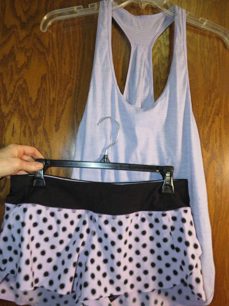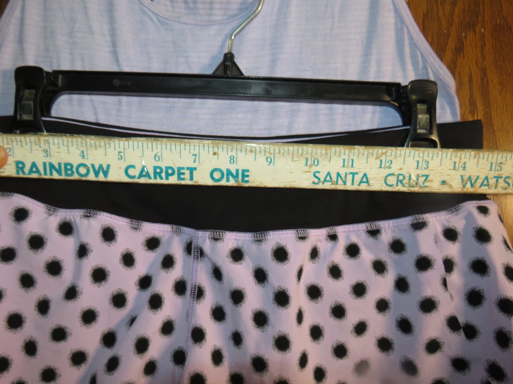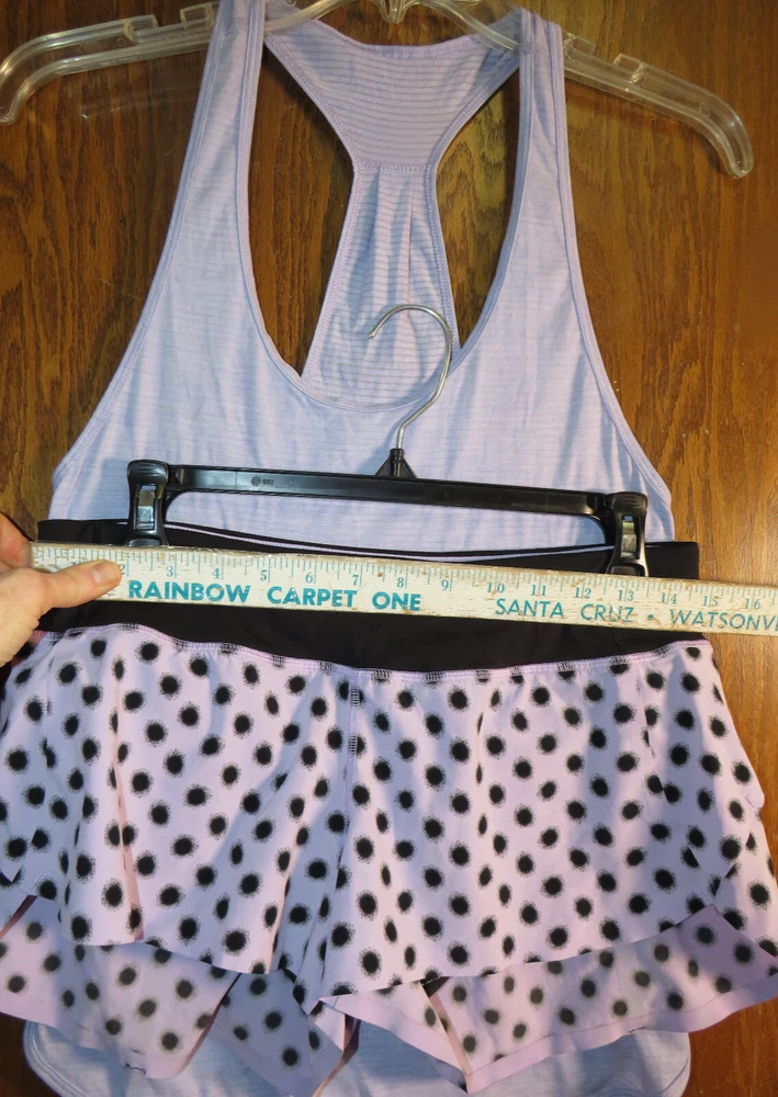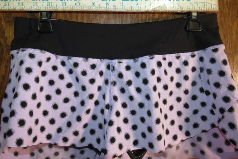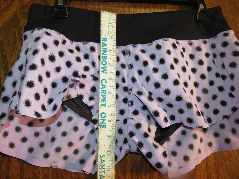 You are viewing a beautiful Lululemon Speed Short, size 6, in excellent used condition! The print is High Noon Dot Lilac, a cute polka dot print, so pretty! The waistband, liner, and trim is Black. This style of short is designed for running. It has bonded seams at the hem (no stitching). It has a wide soft Luxtreme waistband and panty liner. It is ventilated on the back and has a short 2.5 inch inseam. It has two gel pockets and a zippered pocket in the waistband, and you can adjust the fit with the internal tie. The fabric is 4-way stretch, so a forgiving fit. Please see photos for details on the size and condition. The size tag is present (trimmed) , and you can see the waist measurement to see if this will fit you (also shown with a matching 105F Singlet) . I see no obvious signs of wear. There are no stains, snags, tears or pilling. The elastic and stitching is in great shape, and the fabric between the thighs is smooth, not fuzzy as is typical for this fabric. Rare print! Please review the photos carefully for condition and pairing options. Happy bidding! I have skirts and tanks etc. in these colors too! Please see my other Lulu listings! There are lots of items available in Lilac (Sun Sprinter Short Sleeve, 105F Singlet, inner Heart Bra, Lift & Separate Bra, Sculpt Tank, Cool Racerback Tank, Run Shorty Short, Hot But Not Tank, Some Like It Hot Tank, and more coming! You can make a coordinating outfits with this short! Please search my listings for coordinating items, and see those listings for details and bidding. I f you don't see a listing for an item or a color you want, message me. Thanks for looking! I am listing more items so check back to see what is new. If you're looking for a Lulu item, ask and I may have it or can get it for you. :) Please ask any questions prior to bidding. Shipping is by Priority Mail with tracking in the US, but I will combine shipping if possible when multiple items are bought. Usually 4-5 items ship in one envelope with one shipping charge. If you are outside the US and want any shipping adjustments for combined shipping, please message me before bidding begins or purchasing so I can change it. Payment is due within 3 days via Paypal. Note that ebay automatically cancels orders that don't get paid within 7 days.