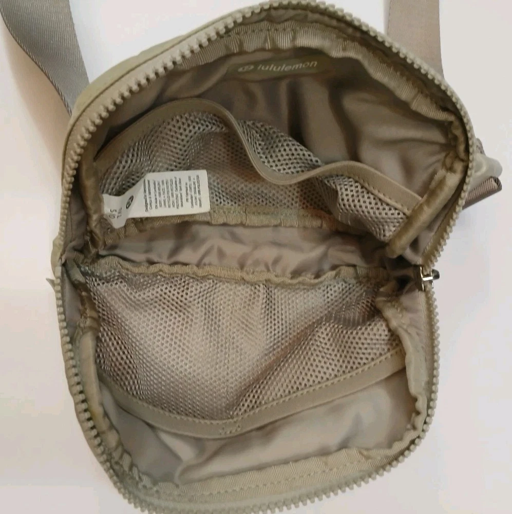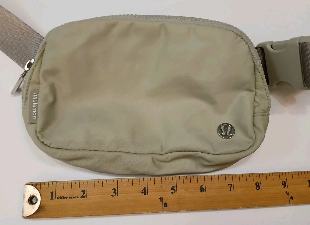 The Lululemon Belt Bag in Grey is a versatile and stylish accessory for women. This medium-sized crossbody bag features a solid grey exterior made of durable nylon material, complemented by silver hardware accents. The adjustable strap and zip closure with a buckle add functionality to this on-the-go bag, perfect for carrying essentials while keeping your hands free. The versatile style and high-quality construction make it a must-have for fashionable and practical women on the move. Preowned Measurements in photos SOME SIGNS OF WEAR NO TEARS OR RIPS NO HOLES ZIPPERS AND BUCKLE GREAT CONDITION HARDWARE HAS SCRATCHES AND FADING
