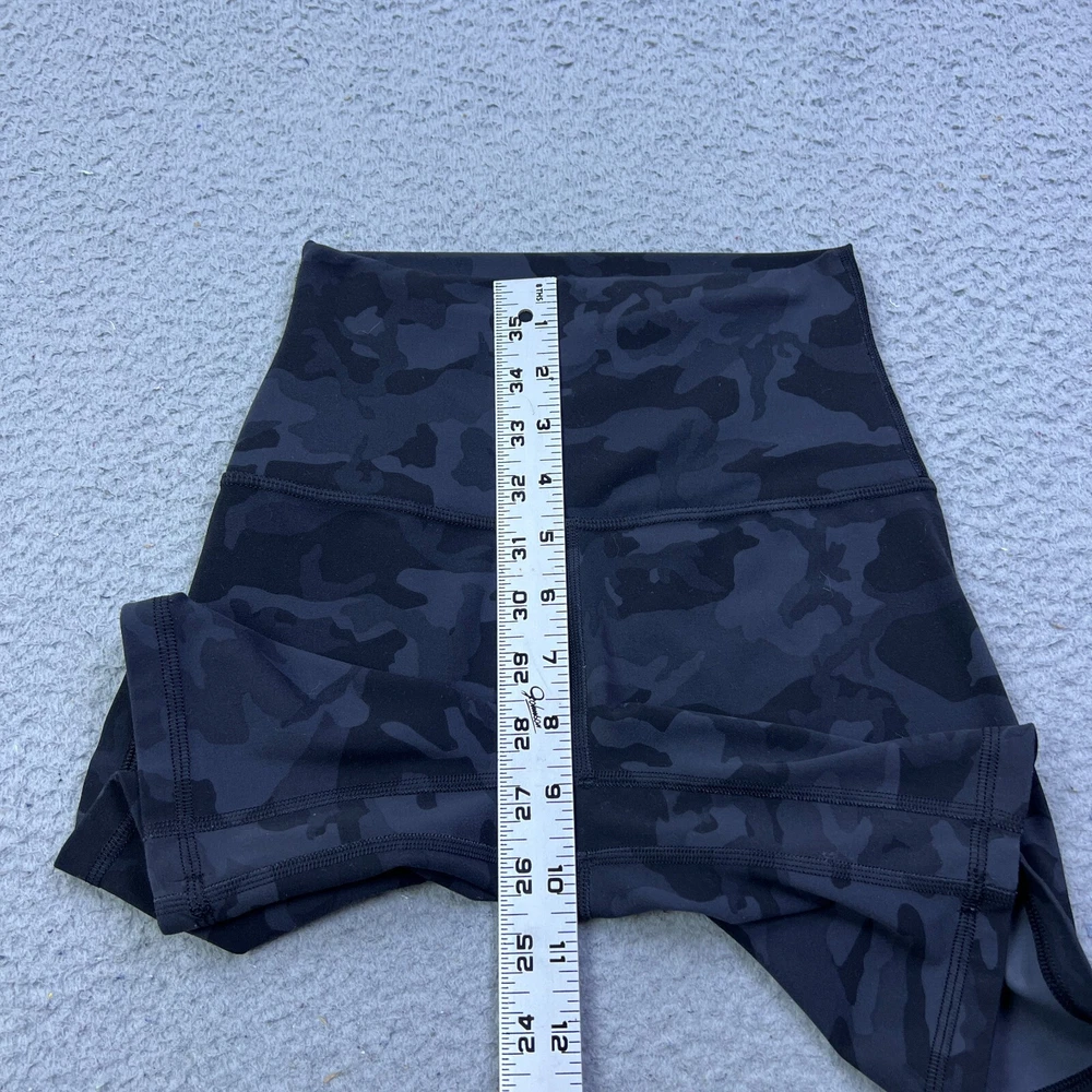 Features: Breathable, Comfort, Easy Care, Elastic Waist, Stretch Garment Care: Machine Washable Season: Fall, Spring, Summer, Winter Fit: Athletic Size: 2 Fabric Type: Blended Fabric Color: Black Waist Size: 21 in Occasion: Activewear, Casual, Travel Brand: Lululemon Personalize: No Compression Area: Buttocks, Thigh, Waist Pattern: Camouflage Inseam: 6 in Size Type: Regular Handmade: No Performance/Activity: Baseball, Basketball, Bodybuilding, Cheerleading, CrossFit, Cross Training, Cycling, Dance, Driving, Football, Golf, Gym & Training, Pilates, Yoga, Weightlifting, Walking, Typing, Track & Field, Tennis, Squash, Soccer, Running & Jogging, School, Racing Style: Athletic Department: Women Seller Notes: “Good used condition” Theme: Army, Bike, Biker, Classic, Designer, Sports, Comfort, Gym, Biker Short