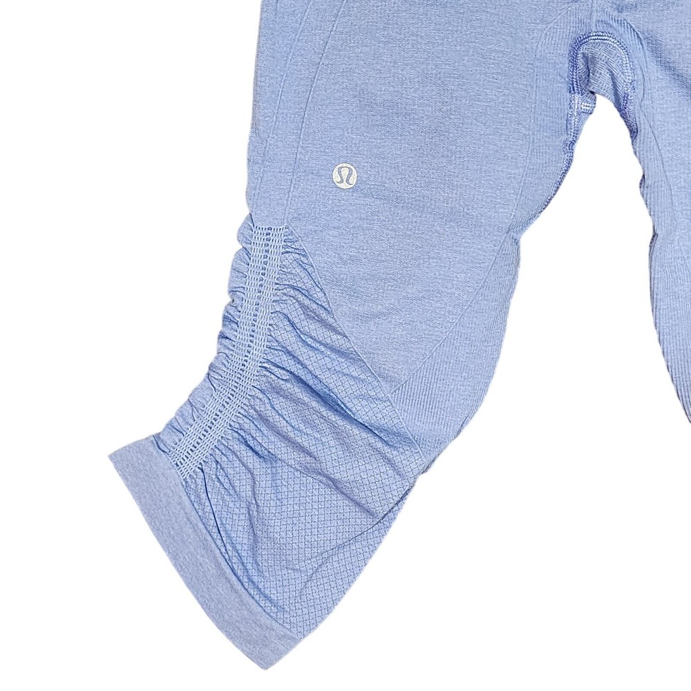 LULULEMON AWAKENING CROP 17" Blue RELEASE DATE: 7/2017 STYLE NUMBER: W6AEKS designed to fit like a second skin. Lightweight fabric Designed for Yoga High-rise Cropped just below the knee Inseam: 17" Excellent Pre Owned Condition, still like new, from the Lululemon like new program Stock photo added to show fit only, not the actual color of item for sale. Inv# 01-009