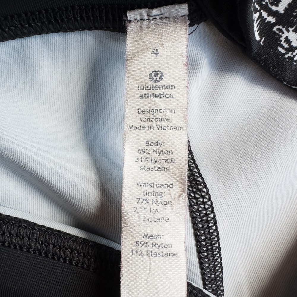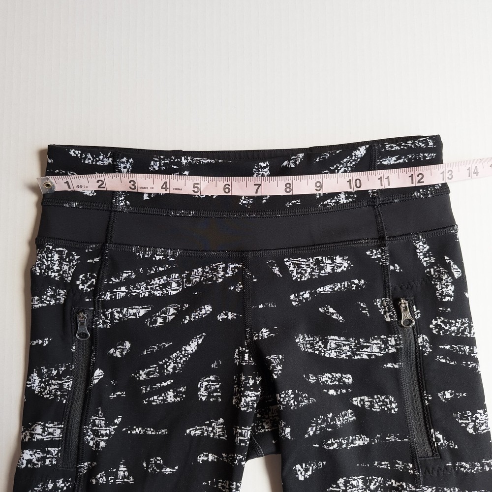 Lululemon Inspire Tight II * Condition: Great pre-owned condition. The rip tag is well-worn but the leggings are in great condition. There are no stains, holes, or major signs of wear. Please see photos. * Size: 4 * All measurements are approximate and taken lying flat unless otherwise noted. Please see photos as well. * Waist: 13” across * Inseam: 22.5” * Rise: 8” * Color: Graf Black White/Black * Pattern: See photos * Material: Body: 69% Nyon, 31% Lycra elastane / Waistband Lining: 77% Nylon, 23% Lycra elastane / Mesh: 89% Nylon, 11% Elastane * Full-On Luxtreme fabric offers support, coverage, and a cool, smooth feel * Added Lycra for shape retention * Sweat wicking, lightweight, breathable * Four-way stretch * Mesh fabric panels on legs for extra ventilation * 7/8 length * Internal continuous drawcord to adjust fit * Two hidden pockets in waistband * Two side zip pockets * Style Number: W5LFHS * Machine Washable Style Profile: Athleisure, Athletic, Running, Activewear, Sport, Gym, Workout, Exercise, Training, Fitness, Lifting All of my items are stored in a smoke-free, dog-friendly home.