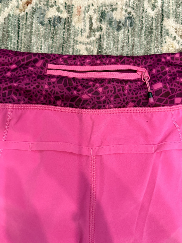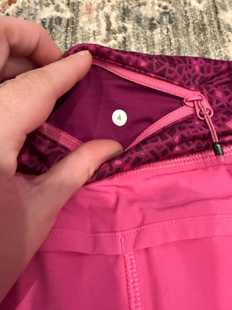 Lululemon Pink Speed Paradise Geo Regal Athletic Gym Workout Shorts, Sz 4 _____________________________ Fits like - s / 4 Size on label - 4 _____________________________ Tracked shipping dispatch aim 2 - 3 business days Smoke free, pet friendly home _____________________________ Good preowned condition. Please see all photos for any flaws/imperfections. See all photos for more details. Colors can be difficult to judge when shopping online because of differences in lighting and device settings. Measurements taken lying flat and are approximate. Offers welcome. !! Bundle & save !! Feel free to message with any questions ****Please note that I do not accept returns. Please check my listed measurements or message me with any questions. I will only accept returns if an item is not as described.****