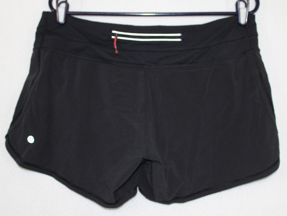 Welcome to Pim's clothing sales Nice condition. Pull on shorts with elastic waist and drawstring. Zipped back pocket. Lined. Brand: Lululemon Material: 86% Polyester 14% Spandex outer, 89% Polyester 11% Spandex liner (Tag has been removed) Size : 10 Pocket Tag - see measurements below Waist: 34 + stretch Hips: 41 Rise: 12 Inseam: 4.5 Length: 12 (Ask if you need more measurements) Please Remember all Clothing Items may fit differently depending on Brand, Fit, Use or Prior customization. We strongly urge our customers to check measurements first to guarantee proper fitting. Please be sure to check out our listings frequently for more high quality Designer Brand clothing items at a fraction of the price. We are getting new inventory all the time! You never know what amazing deals you may find :) Shipping discounts will be provided for multiple purchases -Please contact us after multiple purchases for an updated invoice.