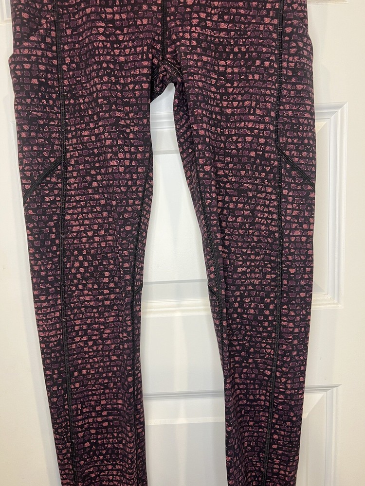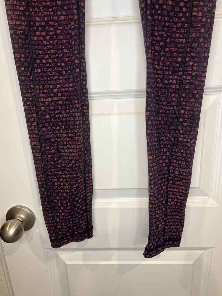 These Lululemon Speed Tight Leggings in Size 4 are a stylish activewear choice for women. Featuring a spotted pattern in a vibrant purple color, these leggings are designed for athletic performance with a compression fit and a skinny leg style. Made from a blended fabric, they offer stretch and have pockets for convenience. Ideal for activities like gym training, yoga, and running, these leggings are versatile for all seasons and are machine washable for easy care. Perfect for those seeking a high-quality and fashionable activewear option. Label tag removed**
