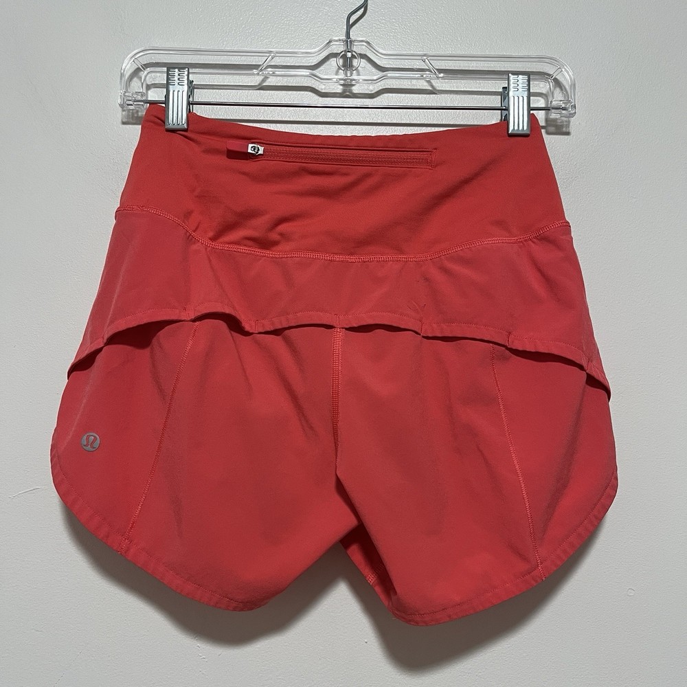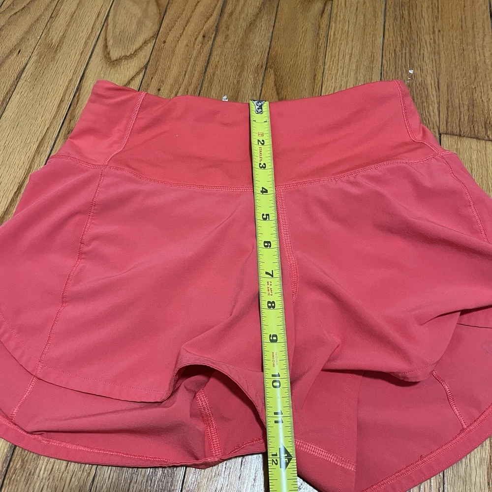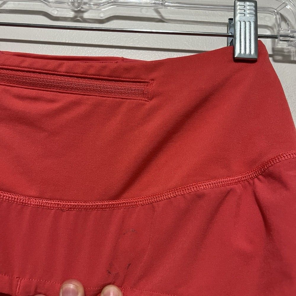 Lululemon Speed Up High-Rise Lined Short 4" in Pink Size 2 There was a name sticker on the inside of the shorts and there is sticker residue there. I think it came off in the wash and left some marks in other places, too. 15204
