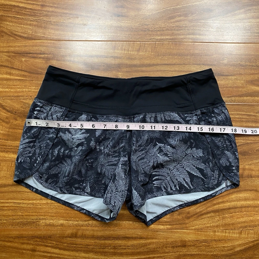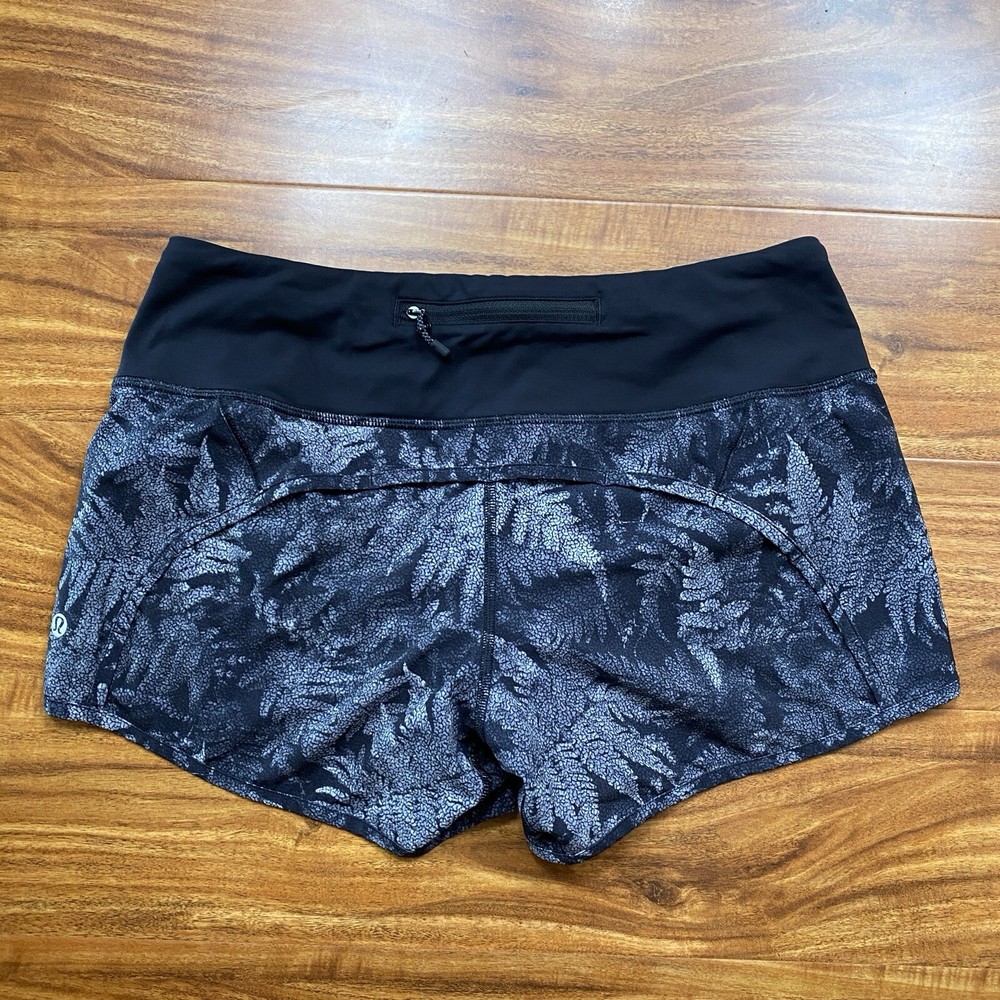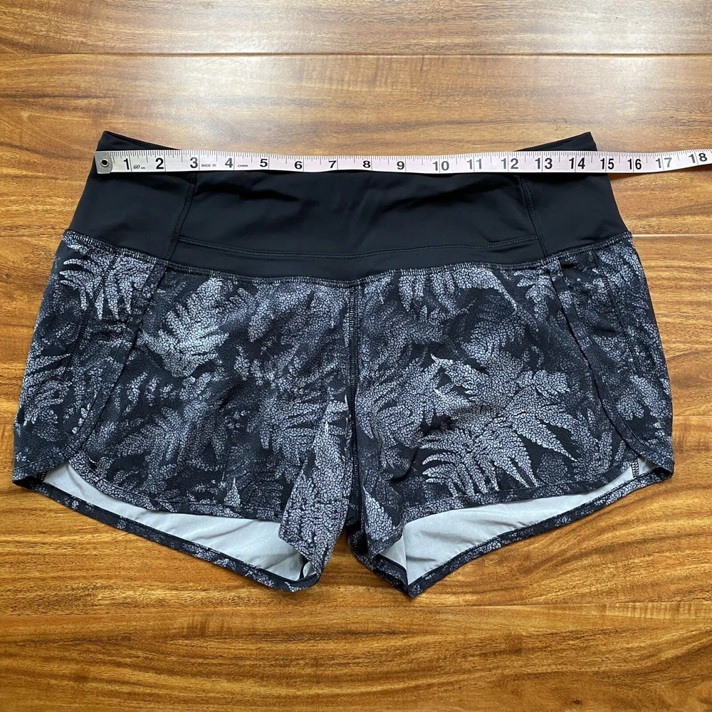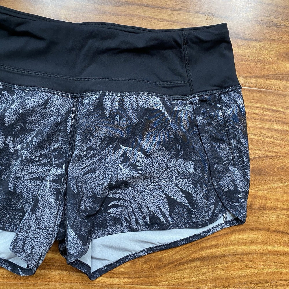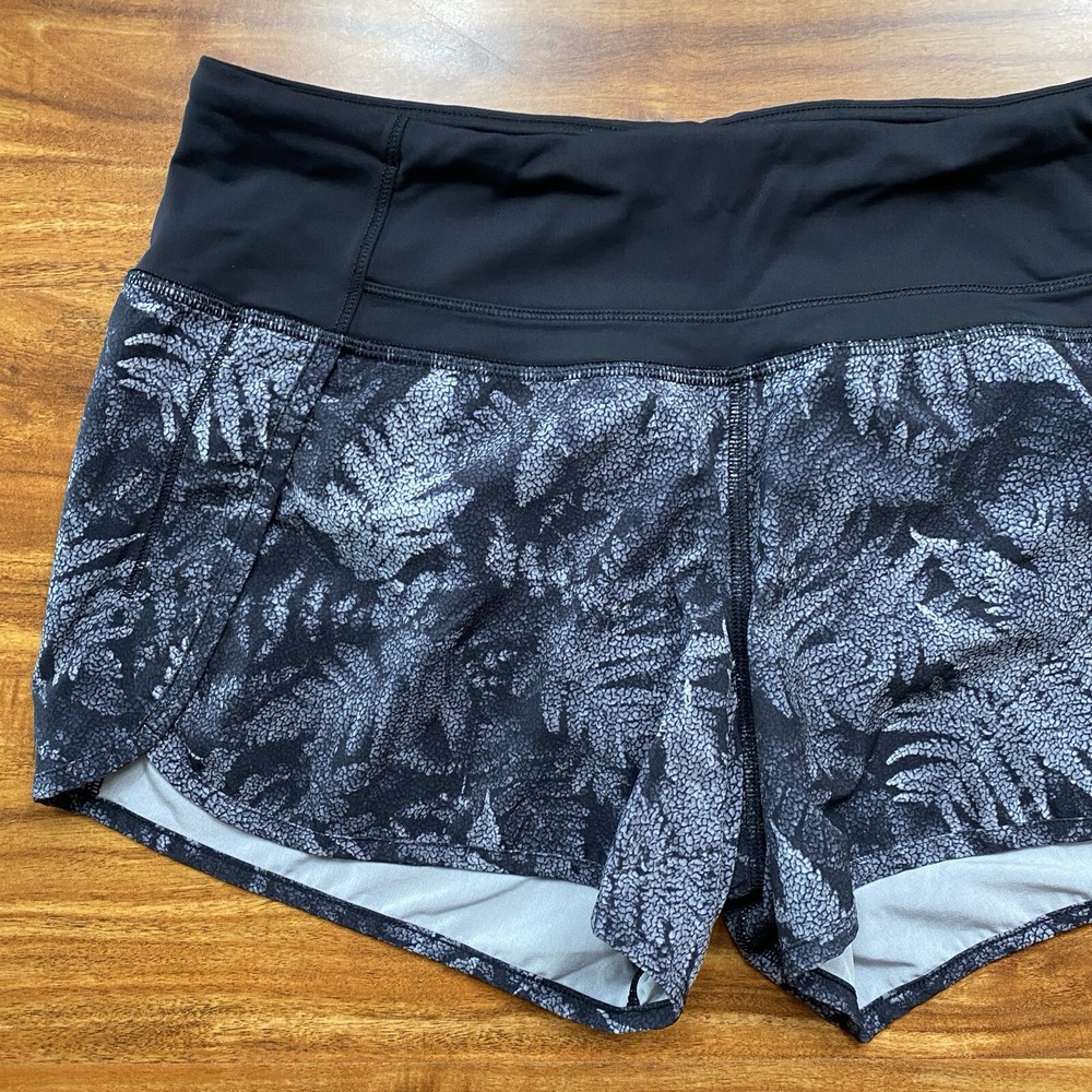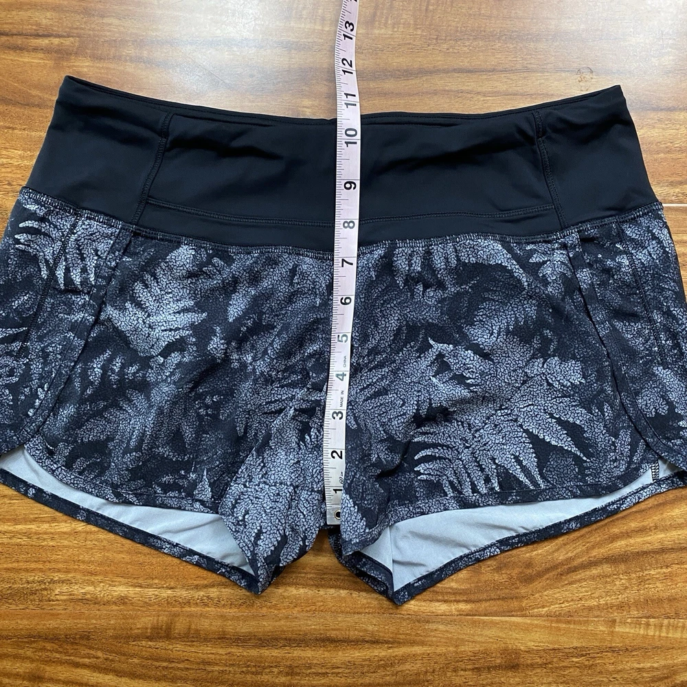 Lululemon Run Speed Shorts Size 2 Black Floral with Color Block Waistband