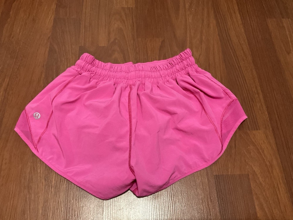 The Lululemon Hotty Hot Athletic Shorts in Size 2 Sonic Pink with a 2.5 inch inseam are perfect for active women looking for comfortable and supportive athletic wear. Made from a blend of polyester and nylon, these shorts feature a solid pattern, drawstring closure, and a compression area at the waist. Ideal for gym training, cross training, and running, these shorts are machine washable and easy to care for. With a stylish and athletic fit, they are ideal for summer and spring seasons. Only flaw is tag is pulled out.