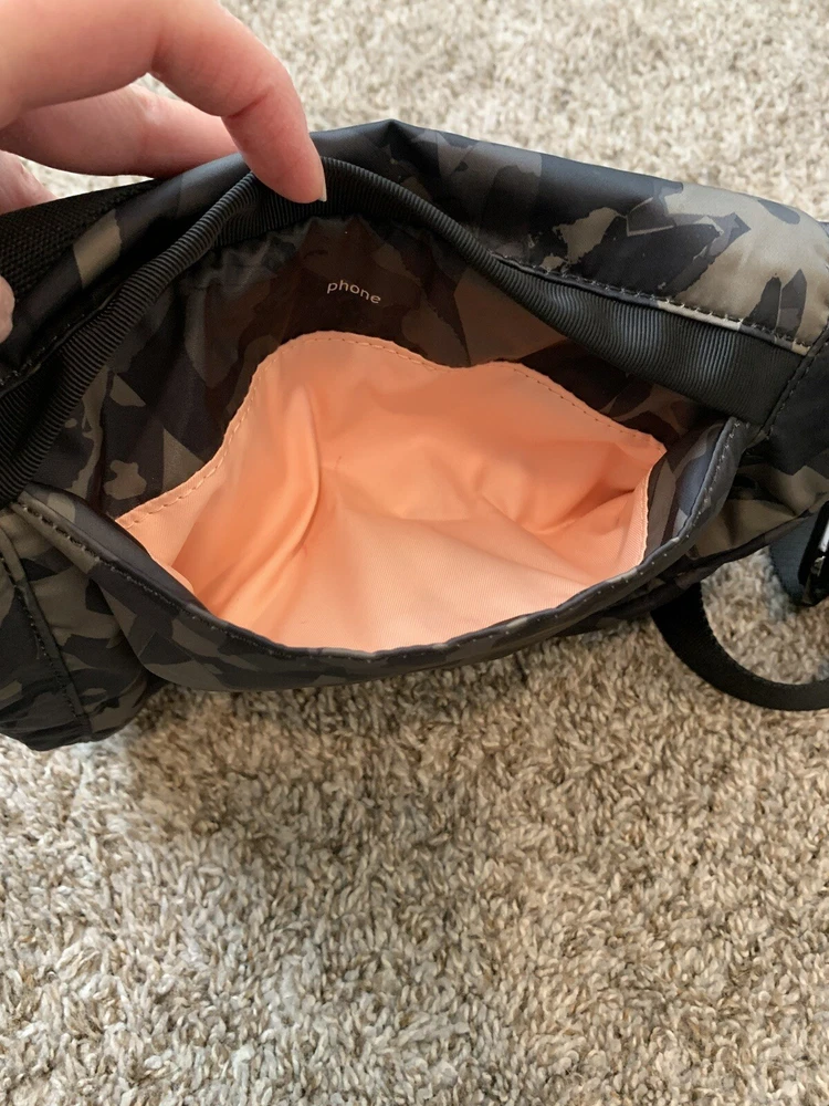 Lululemon green camoflauge crossbody bag Pockets throughout Adjustable strap Approximate measurements 10” x 8” x 4” Great condition