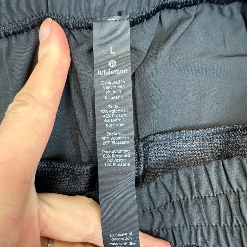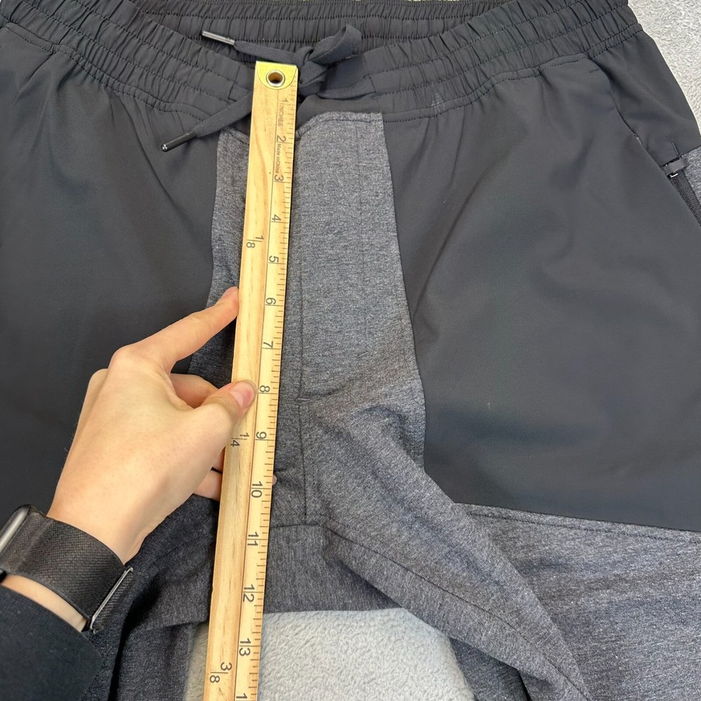 Occasion: Activewear Style: Jogger Character: N/A Features: Breathable, Comfort, Easy Care, Elastic Waist, Media Pocket, Pockets, Quick Dry, Stretch, Zip Pocket Size: L Size Type: Regular Waist Size: 32 in Country/Region of Manufacture: Vietnam Garment Care: Machine Washable Theme: Athleisure, Sports Pattern: Colorblock Model: Lululemon Capacity Type: Pants Performance/Activity: Beach, CrossFit, Cross Training, Gym & Training, Running & Jogging, School, Track & Field, Walking Fit: Athletic Season: Fall, Spring, Summer, Winter Inseam: 31 in Department: Men Product Line: Lululemon Capacity Personalize: No Handmade: No Material: Polyester, Spandex Closure: Drawstring Fabric Type: Blended Fabric Brand: Lululemon Color: Gray Leg Style: Tapered Vintage: No