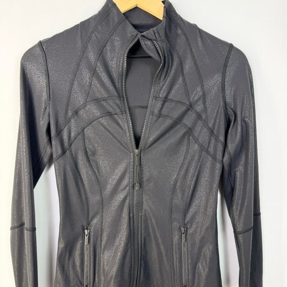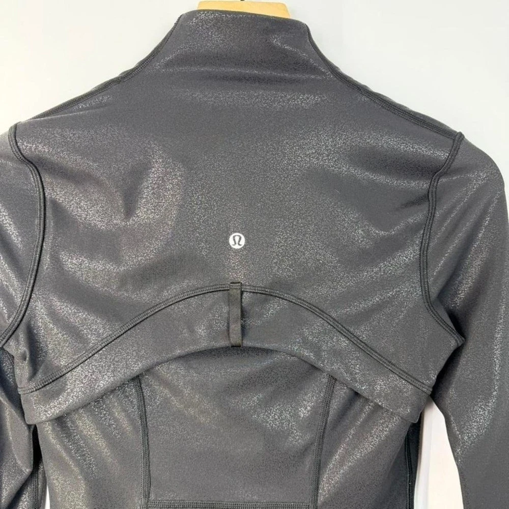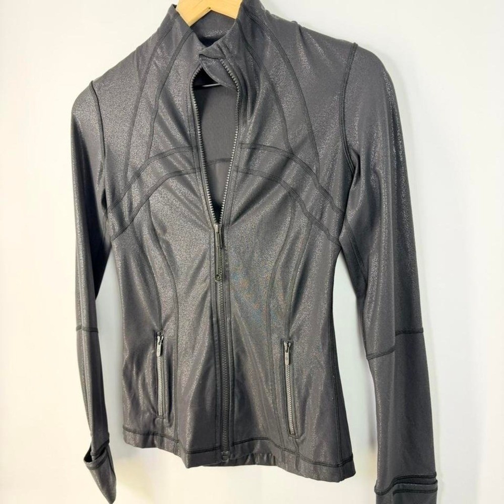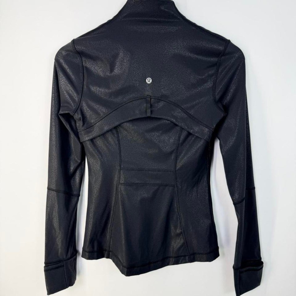 Lululemon Define Jacket Black Shimmer Size 4 Sculpted, body-contouring fit with a subtle shimmer finish. Lightweight performance fabric with stretch, perfect for layering, workouts, or everyday wear. - Full zip front - Thumbholes - Zippered pockets - Signature back logo - Contoured seams for flattering fit Size: 4 Condition: Excellent preowned condition, no flaws noted Measurements available upon request Please note: All items are preowned unless stated otherwise and may show normal wear. Any major flaws will be clearly noted and pictured. Color may vary slightly due to lighting. Fit may vary by brand, please refer to measurements. Photos are part of the description. #lululemon #definejacket #athleisure #activewear #gymwear