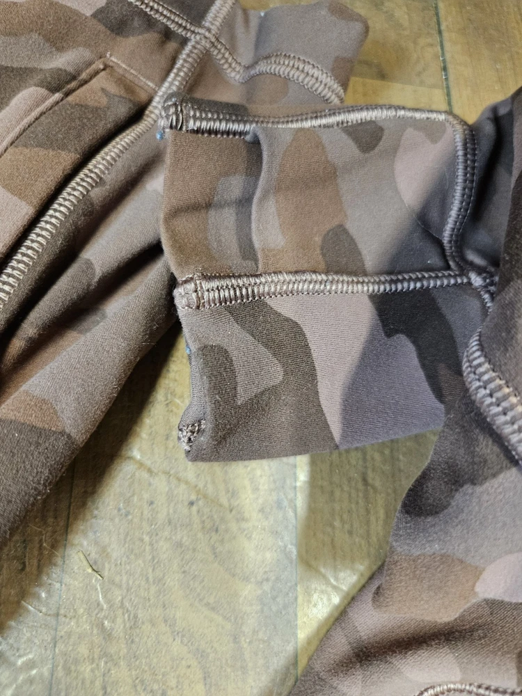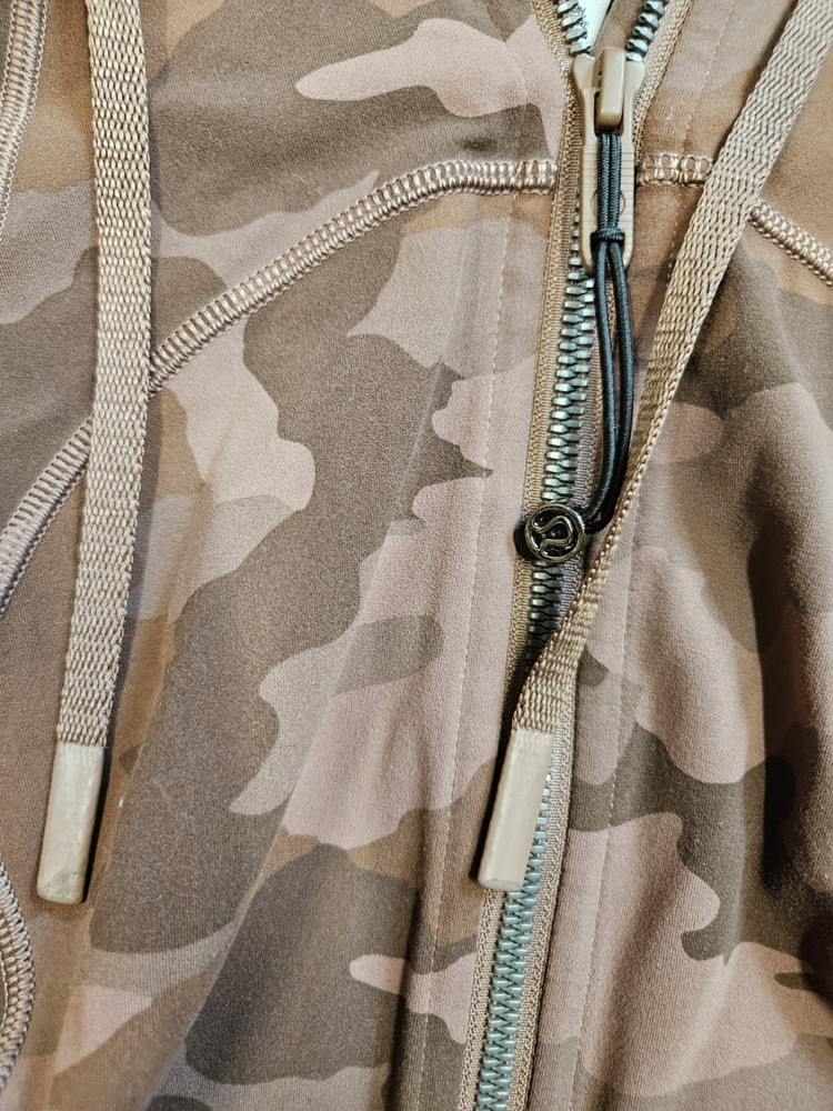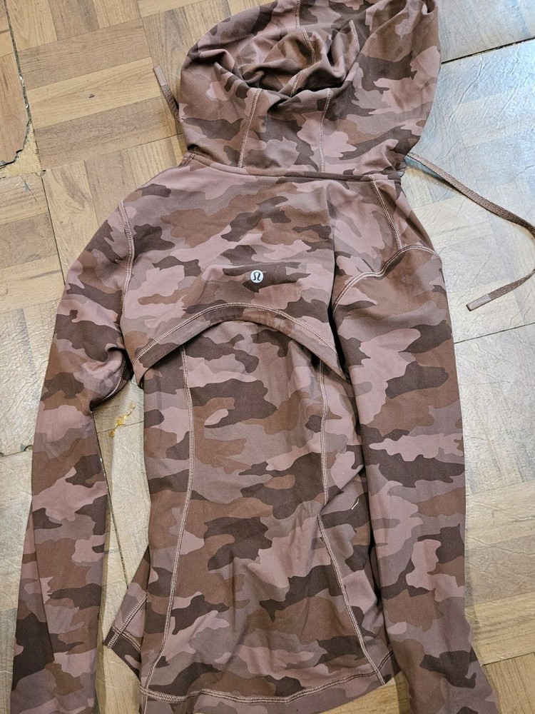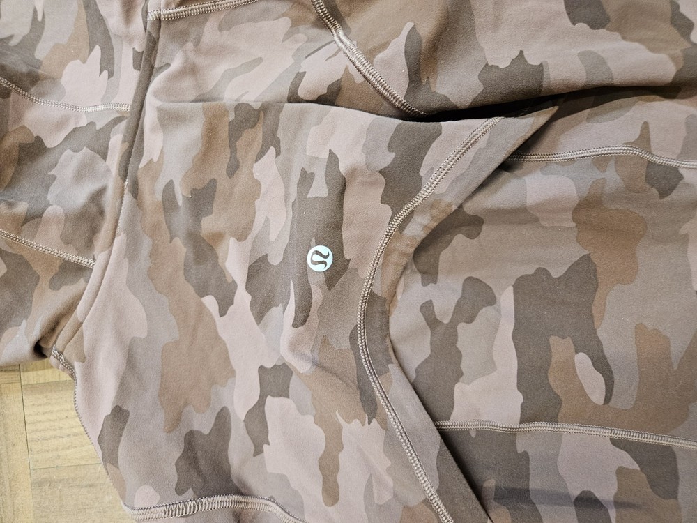The Lululemon Define Jacket in Size 4 is a versatile and stylish mid-length jacket perfect for activewear and casual occasions. Made from a durable nylon blend fabric, this jacket features a camouflage pattern in dark brown and green colors. It has a full zip closure, long sleeves, and moisture-wicking properties, making it ideal for activities like gym training, yoga, and running. With an athletic fit and a regular size type, this jacket from the Lululemon Define product line is a must-have addition to any athleisure wardrobe, offering both style and functionality for the winter, fall, and spring seasons.
