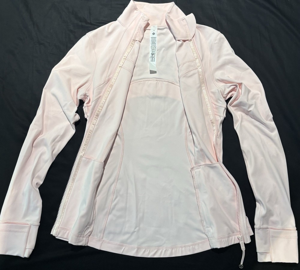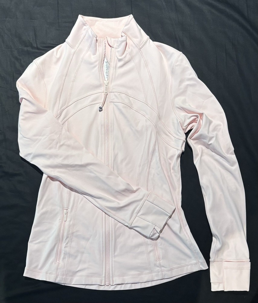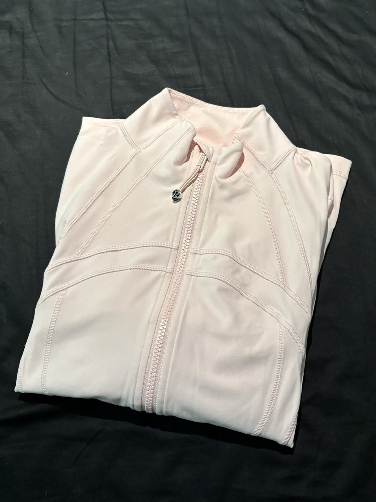 The Lululemon Define Jacket in Strawberry Milkshake is a discontinued activewear piece made from nulu blended fabric. This slim-fit jacket features a full zip closure, making it perfect for active women who want both style and functionality. The solid color and basic jacket style make it versatile for various occasions, while the Lululemon brand ensures quality and durability. In this size 10 jacket, you can stay comfortable and stylish during your workouts or everyday activities.