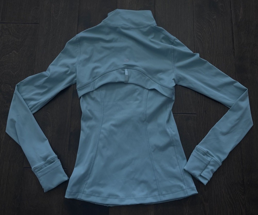 The Lululemon Define Jacket is a versatile activewear piece designed for women size 2. Made with a durable nylon outer shell and polyester. this blue jacket is perfect for winter, fall, and spring seasons. Featuring a full zip closure, thumbholes, and pockets, this jacket offers both style and functionality for activities such as gym training, yoga, and running. The athletic fit and short jacket length make it a great choice for those looking for a comfortable and practical outerwear option.