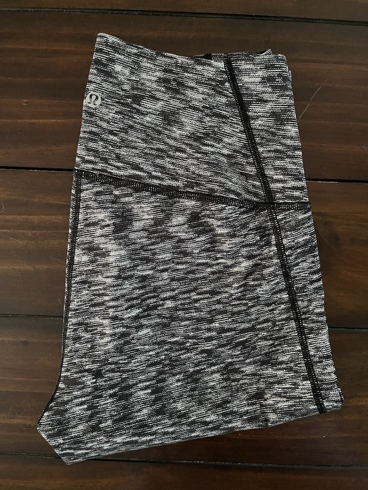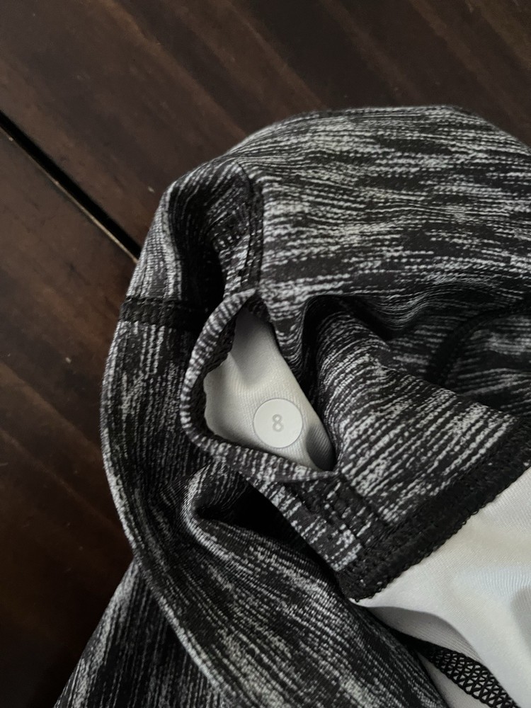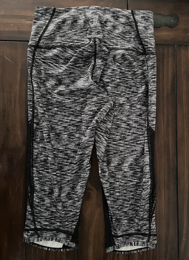 The product is a pair of Lululemon leggings in the "Drop It Like It's Hot Crop" design, specifically tailored for women in size 8. The leggings are in a sleek black color with a dramatic static look, offering a stylish and comfortable option for women's activewear. With the Lululemon brand known for quality and performance, these leggings are sure to provide both support and style for any workout or casual wear.