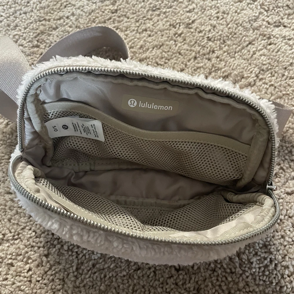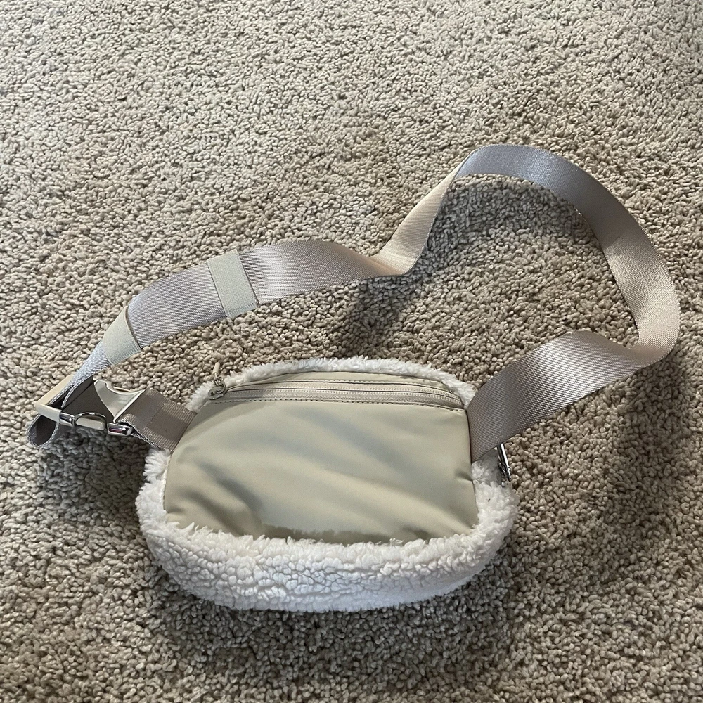 Lululemon Everywhere Belt Bag in natural ivory/trench Excellent preowned condition (no stains) Soft Sherpa fleece front, adjustable straps, clean interior Make me an offer! ❤️ Smoke free home! 🏡
