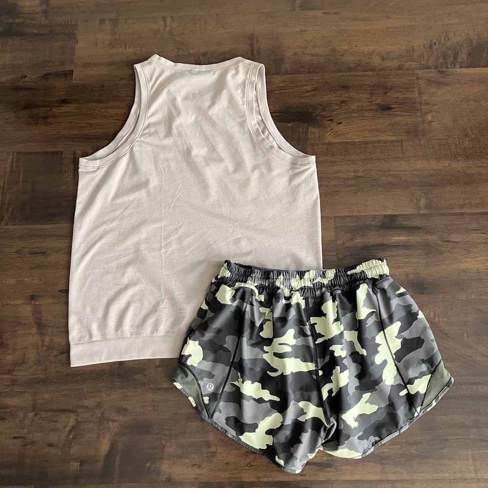 PLEASE BE PREPARED TO MAKE IMMEDIATE PAYMENT AT AUCTION CLOSE. IF THIS IS NOT COOL WITH YOU, PLEASE DON’T BID! Lot of 2! Lululemon Size 8 1. Lululemon Hotty Hot Low Rise Short 4" - Heritage 365 Camo Crispin Green Multi / Medium Olive 2. Lululemon Breeze By Muscle Tank - Cream. Tank has 3 size bars so should be an 8. Tank measures: 15” pit to pit and 25” shoulder to hip. Both items in very good condition. Items come from a pet/smoke free home. Shipping will be $5 in USA, $20 in Canada, International please contact for a quote. Please ask any questions, no returns accepted.