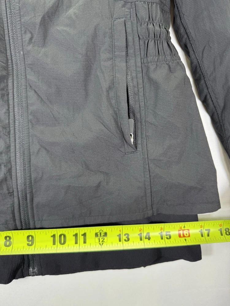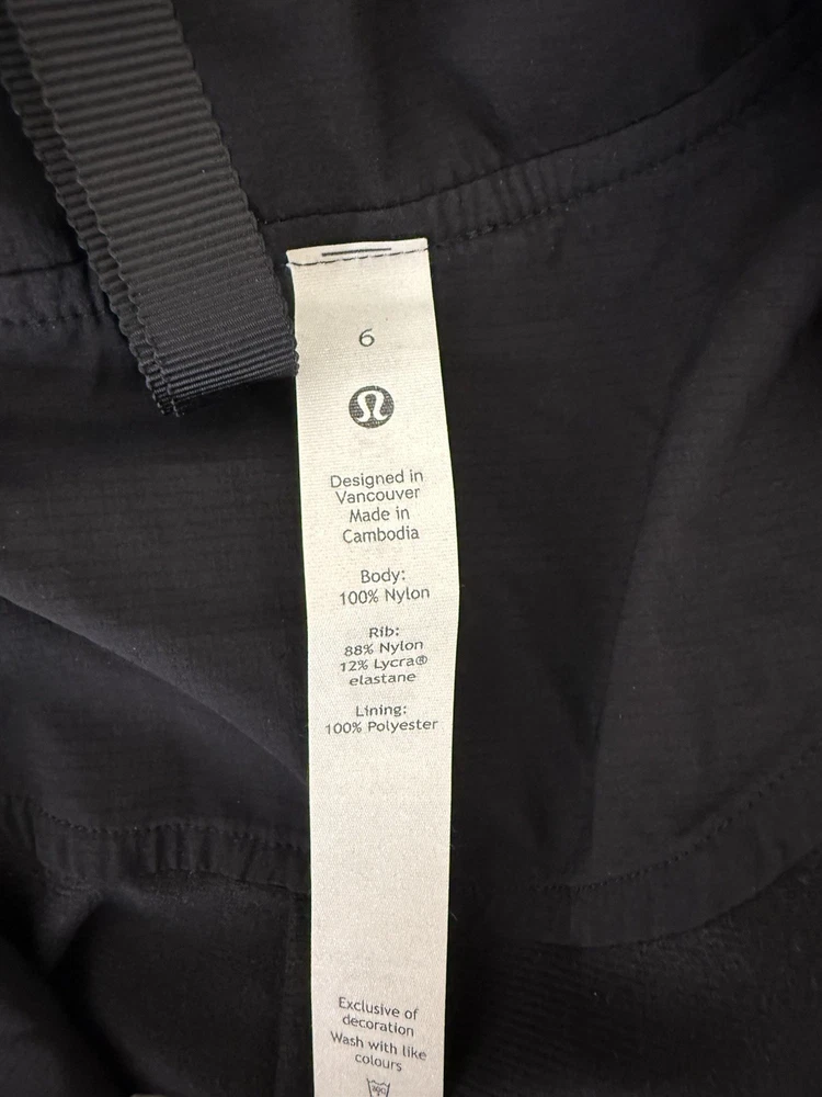 The Lululemon Black Sights Seen Full Zip Windbreaker Jacket in size 6 is a stylish and functional outerwear piece designed for women. Made with a durable nylon outer shell and lined with 100% polyester, this jacket is perfect for outdoor activities in the summer, fall, and spring. The full zip closure and bodywarmer style make it easy to layer over activewear for casual outings or travel. With a solid black color and a sleek design, this windbreaker combines practicality with a touch of athleisure flair, ideal for a variety of sports and outdoor adventures.