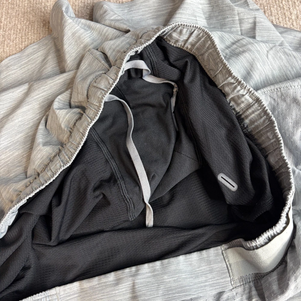 Size:XLFabric Type:Blended FabricStyle:AthleticFeatures:LinedBrand:LululemonSize Type:RegularClosure:DrawstringMaterial:PolyesterPattern:SolidDepartment:MenColor:GrayOccasion:ActivewearInseam:4 in