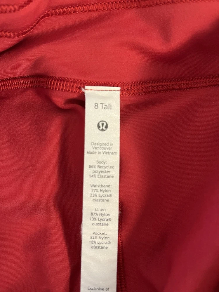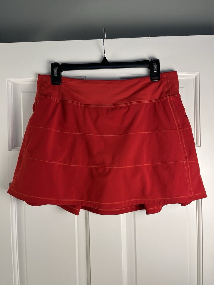 Brand: Lululemon Season: Summer, Spring, Fall Occasion: Activewear Color: Red Country of Origin: Vietnam Handmade: No Skirt Length: Short Fabric Type: Blended Fabric Size Type: Tall Theme: Athleisure, Sports Size: 8 Features: Stretch, Pockets Fit: Athletic Material: Polyester Blend Performance/Activity: Tennis, Golf, Running & Jogging Personalize: No Closure: Pull On Department: Women Pattern: Solid Type: Skirt Style: Athletic Garment Care: Machine Washable
