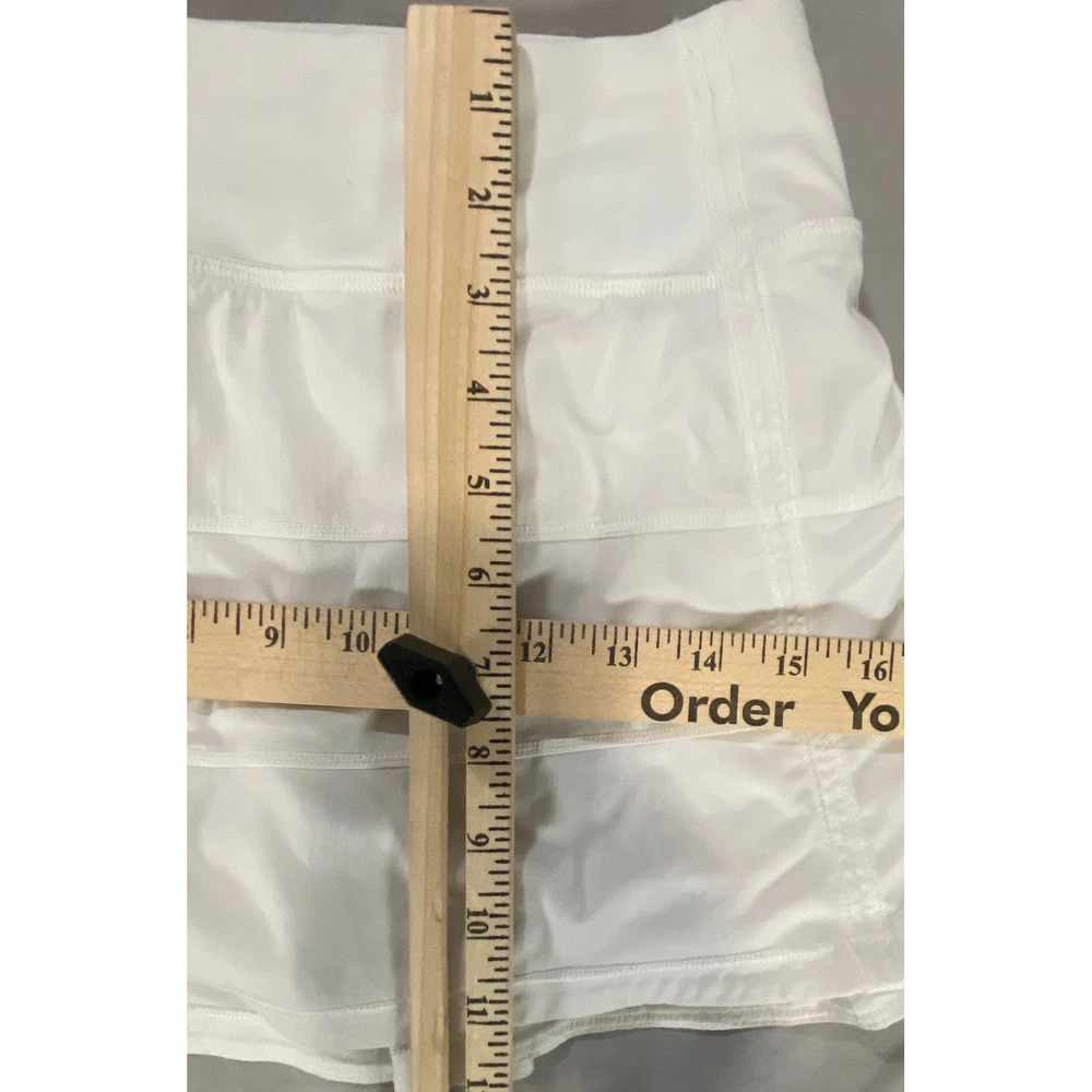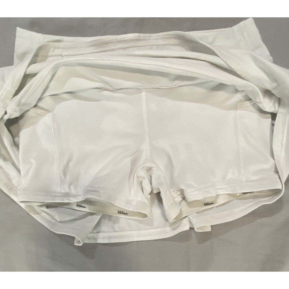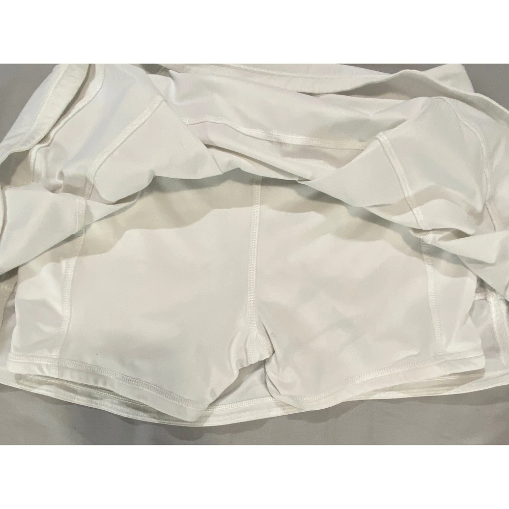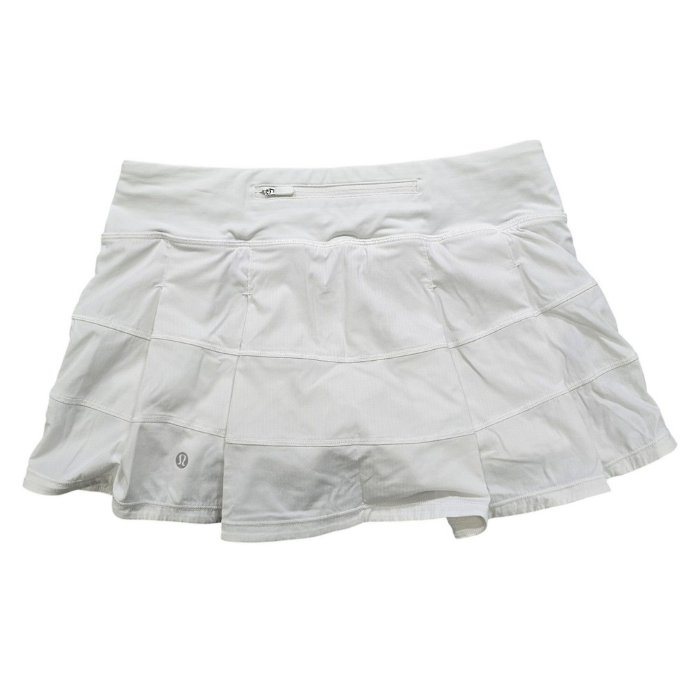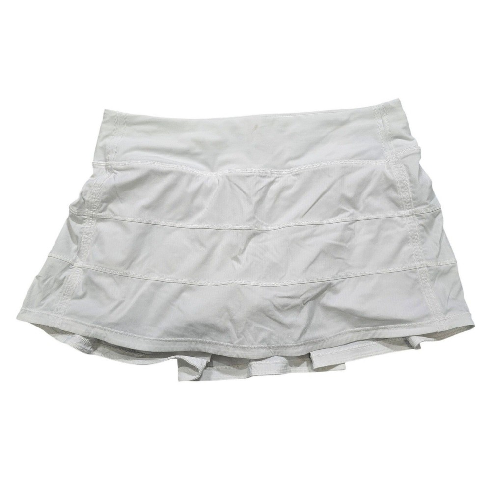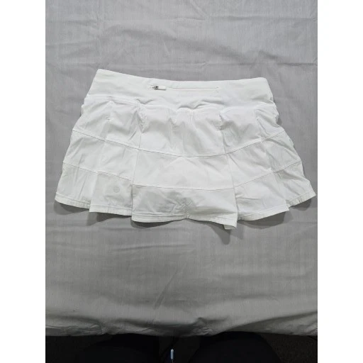 Lululemon Pace Rival Skirt Tall in white is a high-performance athletic staple designed for tennis, running, or golf. This tiered skort features a lightweight, four-way stretch fabric that wicks sweat and dries quickly. It includes built-in shorts with grip at the hem to stay in place, a secure back zippered pocket for essentials, and side drop-in pockets on the liner. The wide waistband provides a comfortable, stay-put fit during intense movement. Please note there are minor marks on the front and back as shown in the photos. Brand: Lululemon Model: Pace Rival Skirt Tall Color: White Material: Polyester blend Style: Tiered athletic skort Features: Built-in liner, back zip pocket, side pockets, silicone leg grips Fit: Tall length, mid-rise Occasion: Tennis, golf, running, gym Care: Machine washable Keywords: Tenniscore, preppy, activewear, athleisure, sporty, golf skirt, court style, summer, breathable, performance, white skort, tiered skirt, workout gear Fast 1 day Shipping