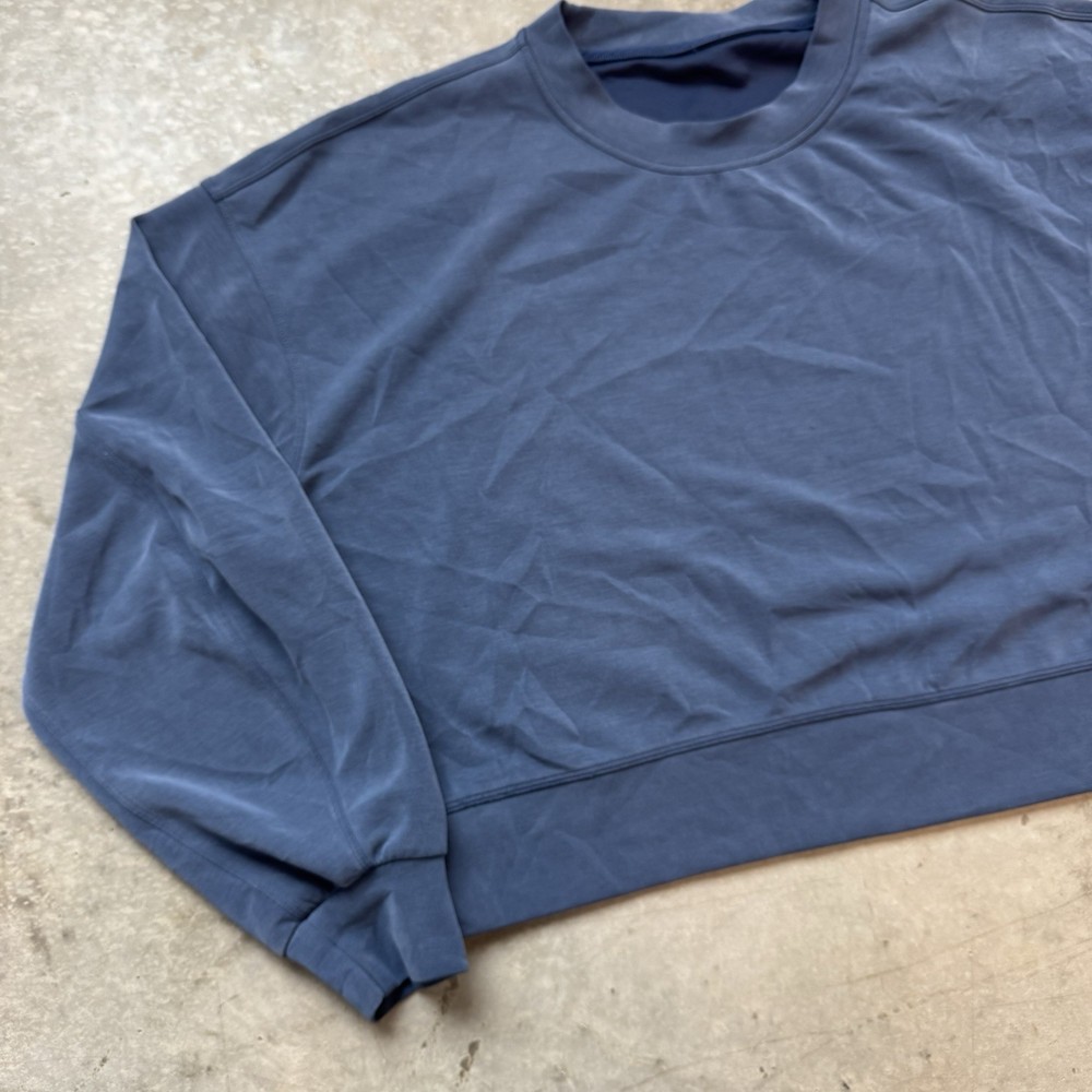 Lululemon Perfectly Oversized Cropped Crew Sweatshirt Softstreme Blue Size 10 - good condition, no major flaws - tagged size 10 - 27” pit to pit - 21” length - 21.5” shoulder to sleeve hem - See measurements because it may not fit like a traditional piece. - To ensure best fit, measure your best fitting similar styled garment you own and compare to the measurements provided below. - Measurements will tell you exactly how it fits. - Tried to include all signs of wear or flaws in pictures. - What you see is what you get so make sure you look carefully through out pictures. - Returns allowed within 30 days of purchase but buyer pays return shipping.