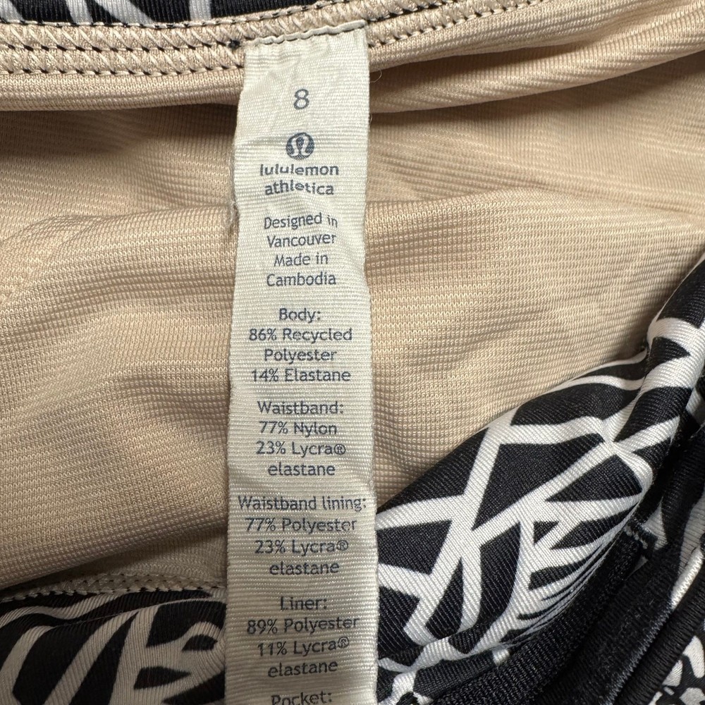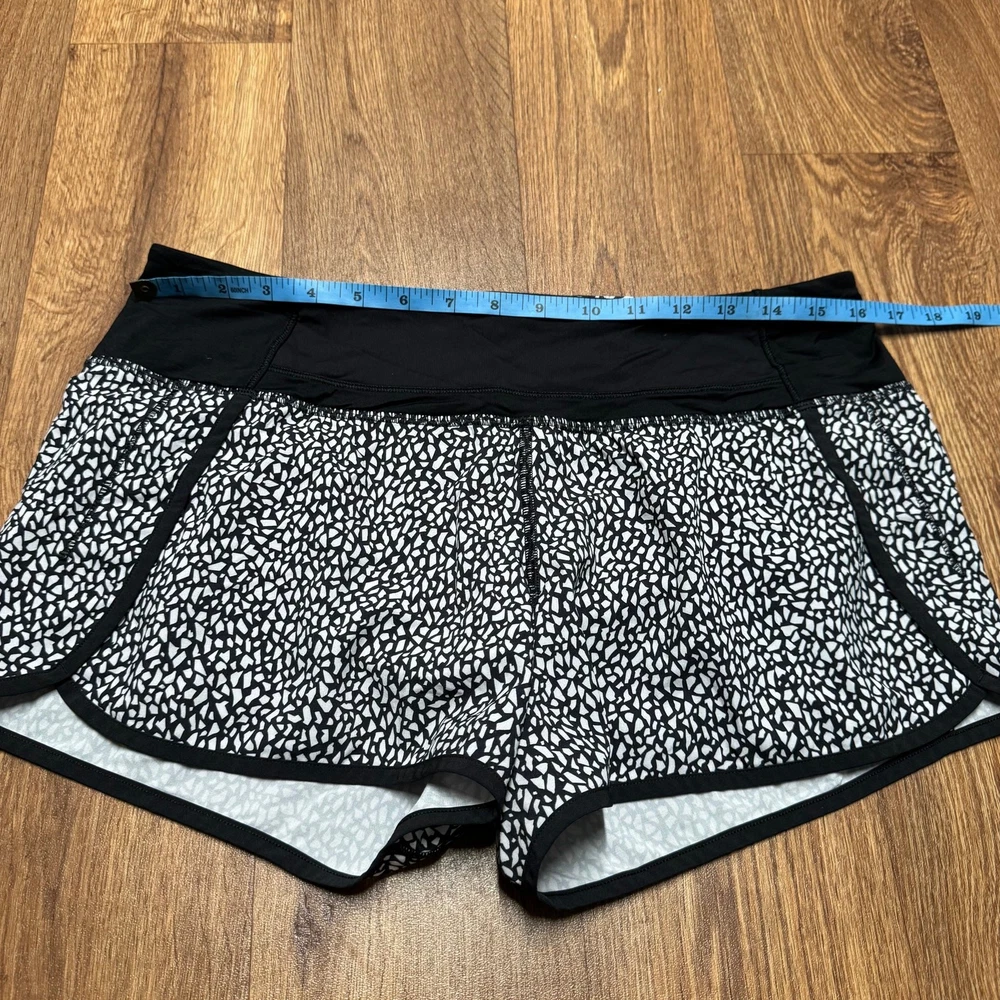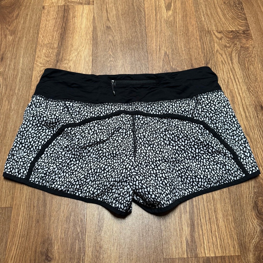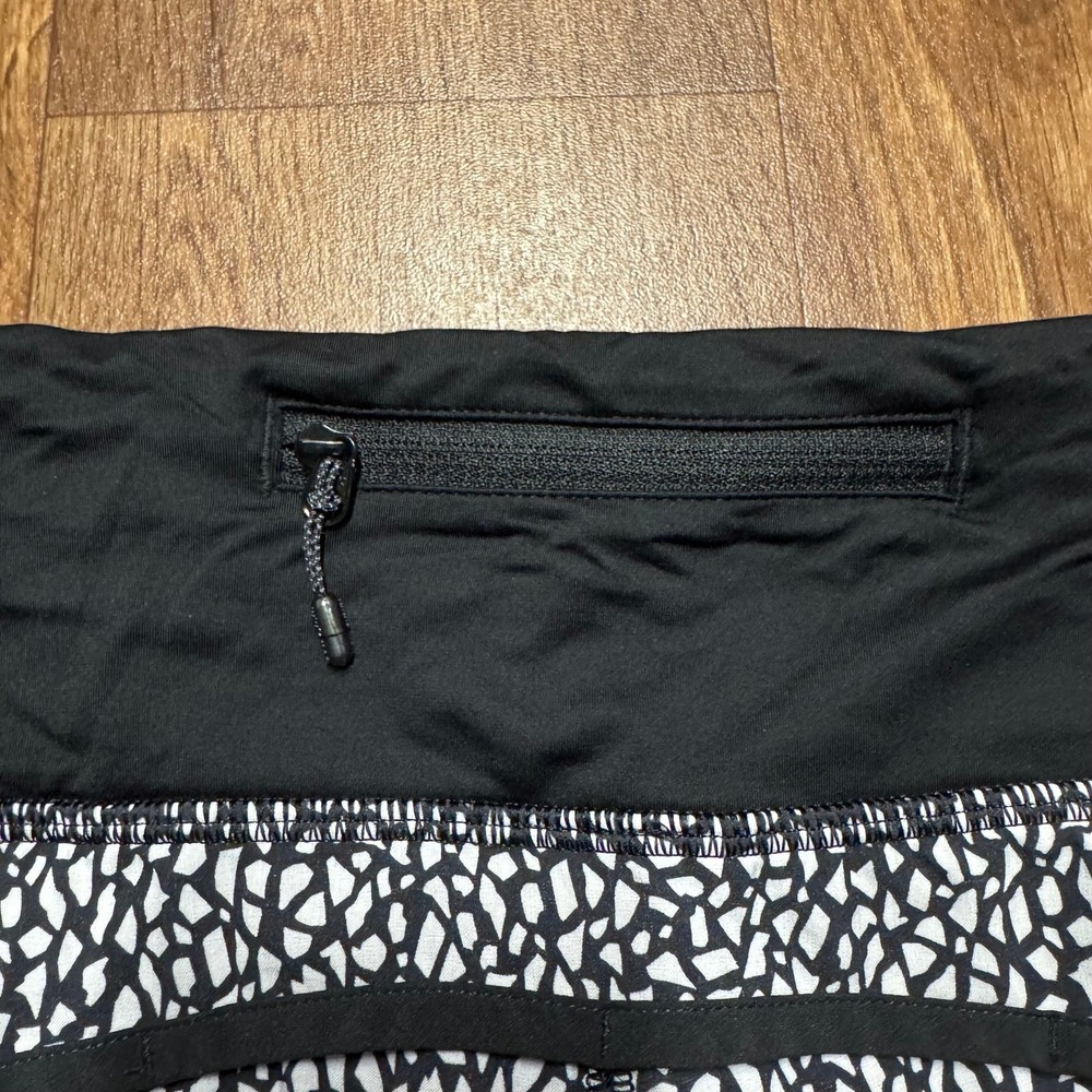 Lululemon Run Times Shorts 4" Miss Mosaic Black White Size 8 Medium Liner Size eight. Excellent condition - rip tag still attached. 2 card pocket slots and 1 zipper pocket.
