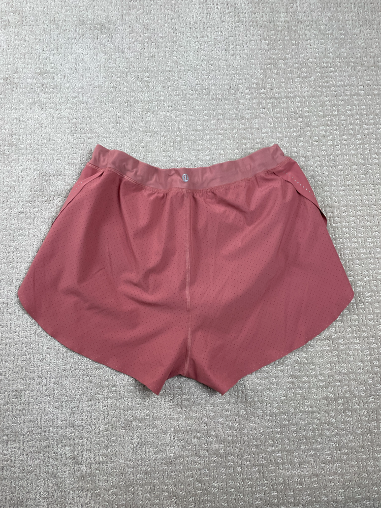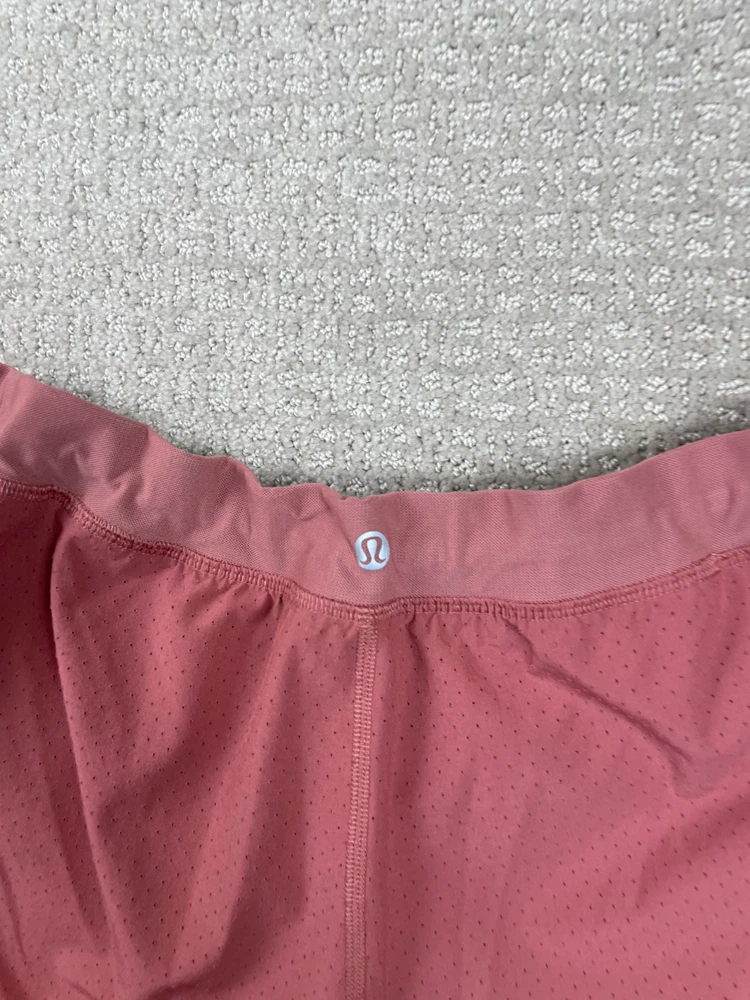The Lululemon Women's Size 10 Find Your Pace 3" Salmon Pink Lined Performance Shorts are designed for active women seeking comfort and style during their workouts. Made of nylon blended fabric, these shorts feature a solid pattern, drawstring closure, and a 3-inch inseam, perfect for running and jogging. The vibrant pink color and sporty theme make them ideal for spring and summer seasons. With a focus on performance and comfort, these lined shorts from Lululemon offer a great addition to any activewear collection.