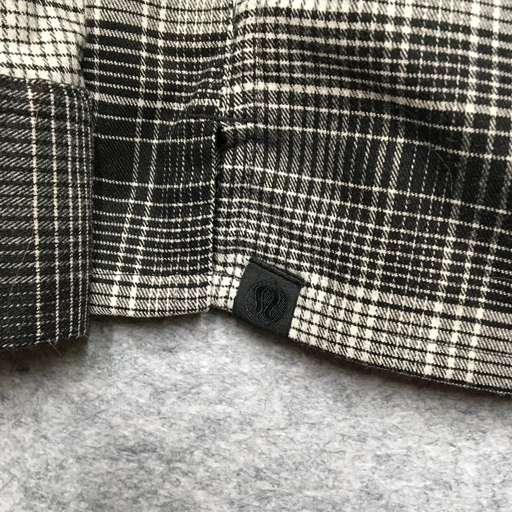 Lululemon Soft Knit Overshirt Mens Medium M Black White Plaid Flannel Button