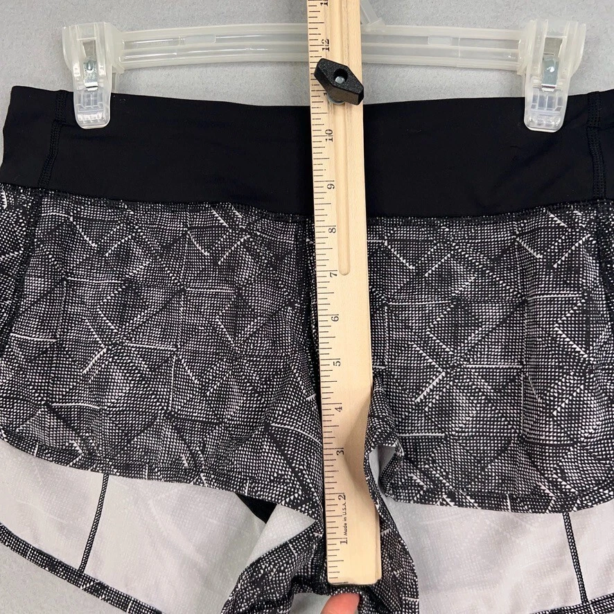Lululemon Shorts Women 6 Alpine Black Speed Lined Run Gym Performance Technical Condition: - Overall in very good used condition. - No rips, holes, or stains. - Nice print. Size: - Womens 6. Measurements: - Previous washings may change the sizing written on the tag. - Please refer to the photos above for all measurements. - Please compare our measurements to that of one of your favorite garments. - Please note, item measurements are approximate. All items are bagged and sealed after being photographed, then stored in a smoke free environment to ensure the item is exactly the same as when photographed. We always carefully package and ship ASAP. Feel free to contact us with any questions. All items have been washed per eBay standards & policies.