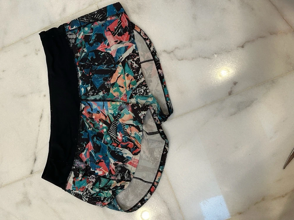 The product is a lot of two Lululemon Speed Shorts in size 4 with a 2.5" inseam. These athletic shorts feature a pull-on closure, multicolor design, and are made of Swift material. Ideal for activewear, the shorts are lined, stretchy, moisture-wicking, and breathable, making them perfect for gym workouts, yoga, or running. The Lululemon brand ensures quality and a comfortable fit for women looking for stylish and functional athletic apparel.