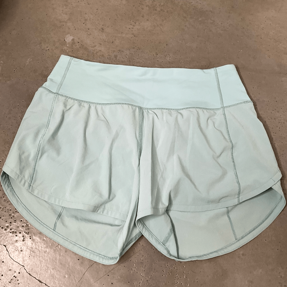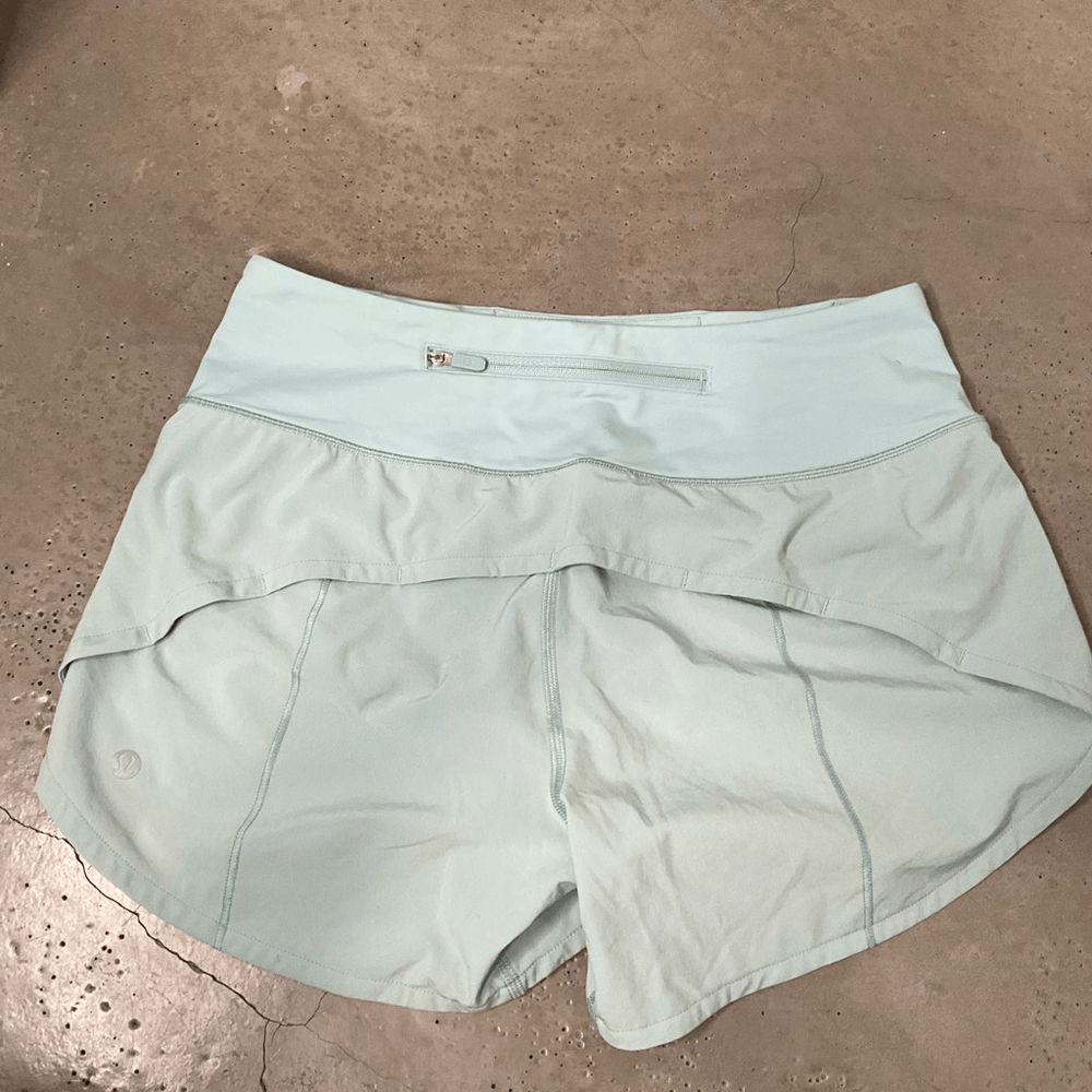 Lululemon Speed Up High-Rise Lined Short Make it a long one. The Speed Up collection features a lightweight waistband and easy-access pockets so you can focus on your run, not your gear. swift Swift fabric is lightweight, four-way stretch, sweat-wicking, and quick-drying features • Designed for: Training • Lined: Liner is sweat-wicking and quick-drying • Three-pocket waistband: Gives you plenty of storage options • Continuous drawcord: Won't get pulled inside or lost in the wash Color: Seafoam Green Size: 4 Tall Excellent Condition