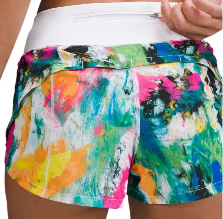 Elevate your workout wardrobe with these colorful Lululemon Speed Up Shorts. The athletic fit and low-rise design provide maximum comfort during cross-training or running sessions. The shorts are made of a blended fabric of polyester and feature a vibrant ikat pattern, perfect for a summer or spring workout. These women's shorts come in size 12 and have a 2.5-inch inseam, making them ideal for any active occasion. The Speed Up Shorts are lined for added comfort and durability, ensuring that you stay dry and comfortable throughout your workout. Add a pop of color to your activewear collection with these Lululemon shorts.