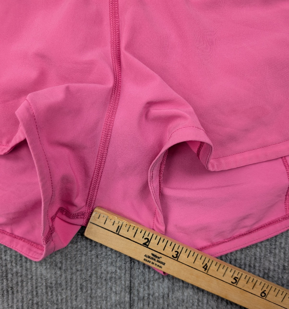Brand: Lululemon Size: Womens 7 Size Type: Regular Type: Athletic Shorts Color: Pink Pattern: Solid Style: Running Shorts Material: Nylon / Spandex Blend (typical Lululemon athletic fabric) Closure: Pull On Features: Stretch, Lightweight, Built-In Liner, Athletic Fit Performance/Activity: Running, Training, Gym, Yoga, Athleisure Department: Womens Pre-owned. Please see photos for condition and details. Some fading and discoloration as shown